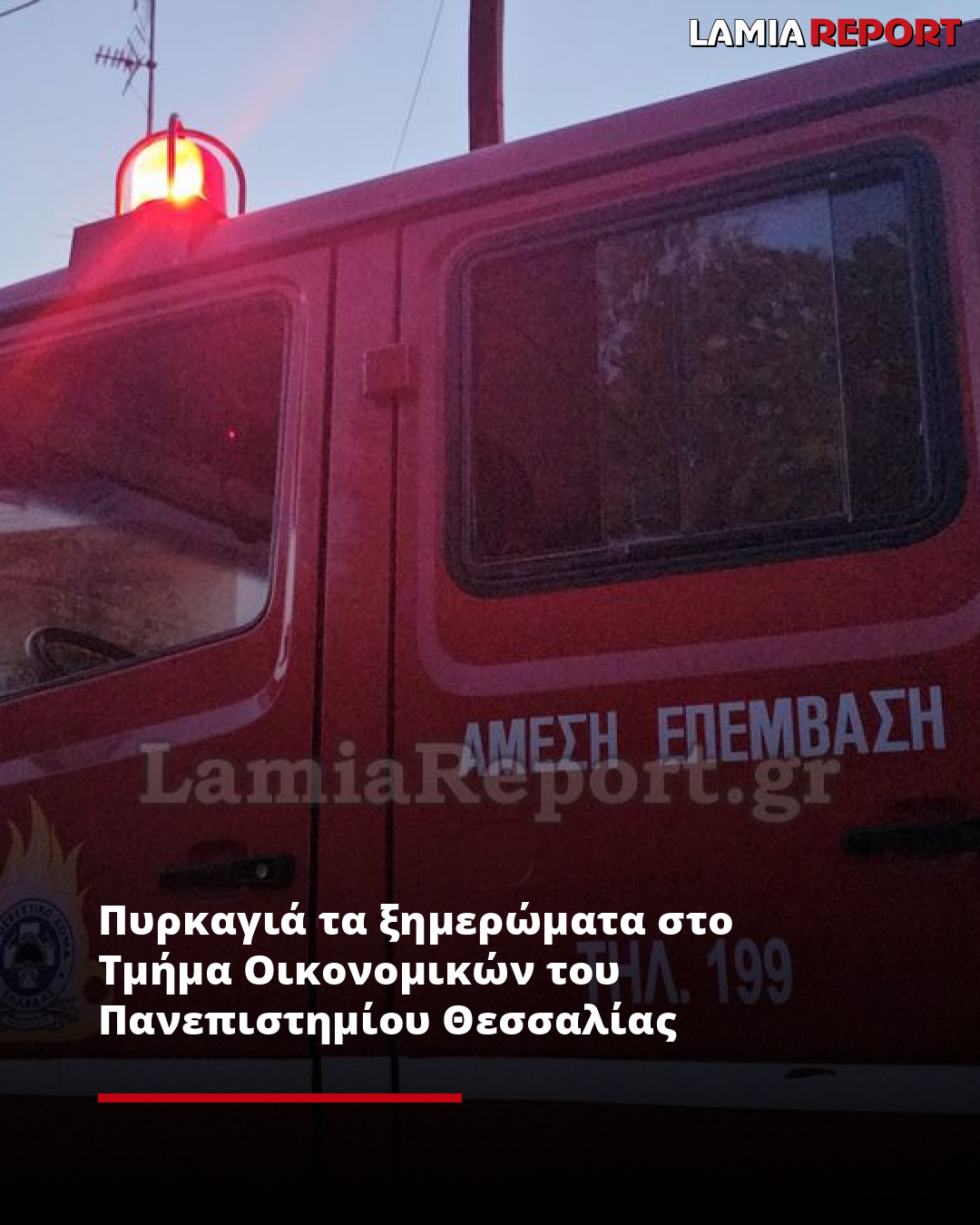 Πυρκαγιά τα ξημερώματα στο Τμήμα Οικονομικών του Πανεπιστημίου Θεσσαλίας