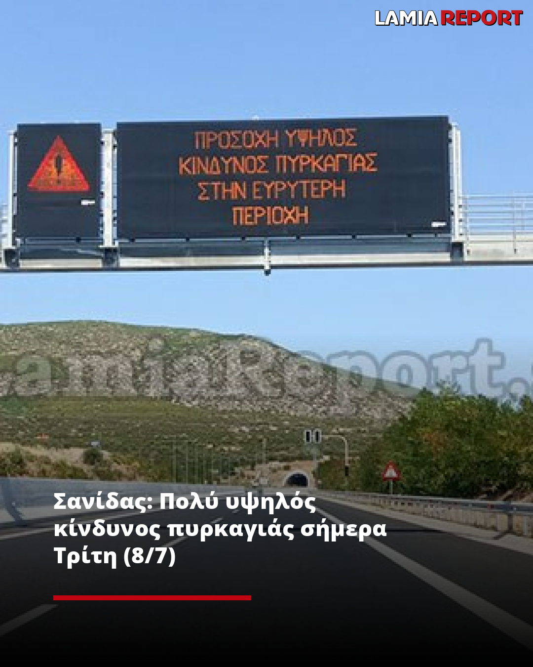 Ενημέρωση και οδηγίες για τον πολύ υψηλό κίνδυνο πυρκαγιάς που υπάρχει για όλη τη Φθιώτιδα την Τρίτη 8 Ιουλίου 2025, έδωσε ο Αντιπεριφερειάρχης ΠΕ Φθιώτιδας Ηλίας Σανίδας, καθώς λαμβάνεται και το μέτρο της απαγόρευσης διέλευσης, παραμονής κ.λπ. σε περιοχές αρμοδιότητας όλων των Δασαρχείων Π.Ε. Φθιώτιδας: Λαμίας, Αταλάντης, Σπερχειάδας από τη 12η βραδινή της 07/07/2025 έως τη 12η βραδινή της 08/07/2025.
