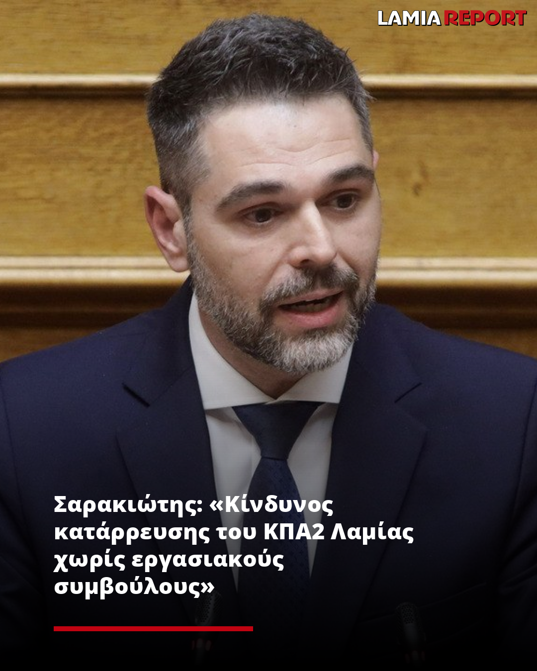 Στη Βουλή των Ελλήνων κατέθεσε ερώτηση ο Βουλευτής Φθιώτιδας, Γιάννης Σαρακιώτης, στην οποία περιγράφεται ο κίνδυνος λειτουργικής κατάρρευσης του Κέντρου Προώθησης Απασχόλησης (ΚΠΑ2) Λαμίας, λόγω της επικείμενης λήξης των συμβάσεων δεκατριών (13) συμβασιούχων εργασιακών συμβούλων στις αρχές του 2026.