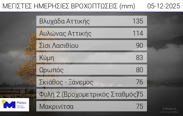 Για ρεκόρ βροχόπτωσης στο κέντρο της Αθήνας με βάση τα δεδομένα του Meteo Gr κάνει λόγο ο μετεωρολόγος Θοδωρής Κολυδάς, καθώς βλέπουμε περιοχές γενικά της Αττικής στη λίστα με τις 8 μέγιστες ημερήσιες βροχοπτώσεις.