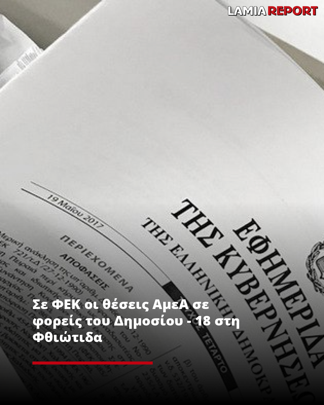 Για τη Φθιώτιδα οι θέσεις είναι οι παρακάτω 18: