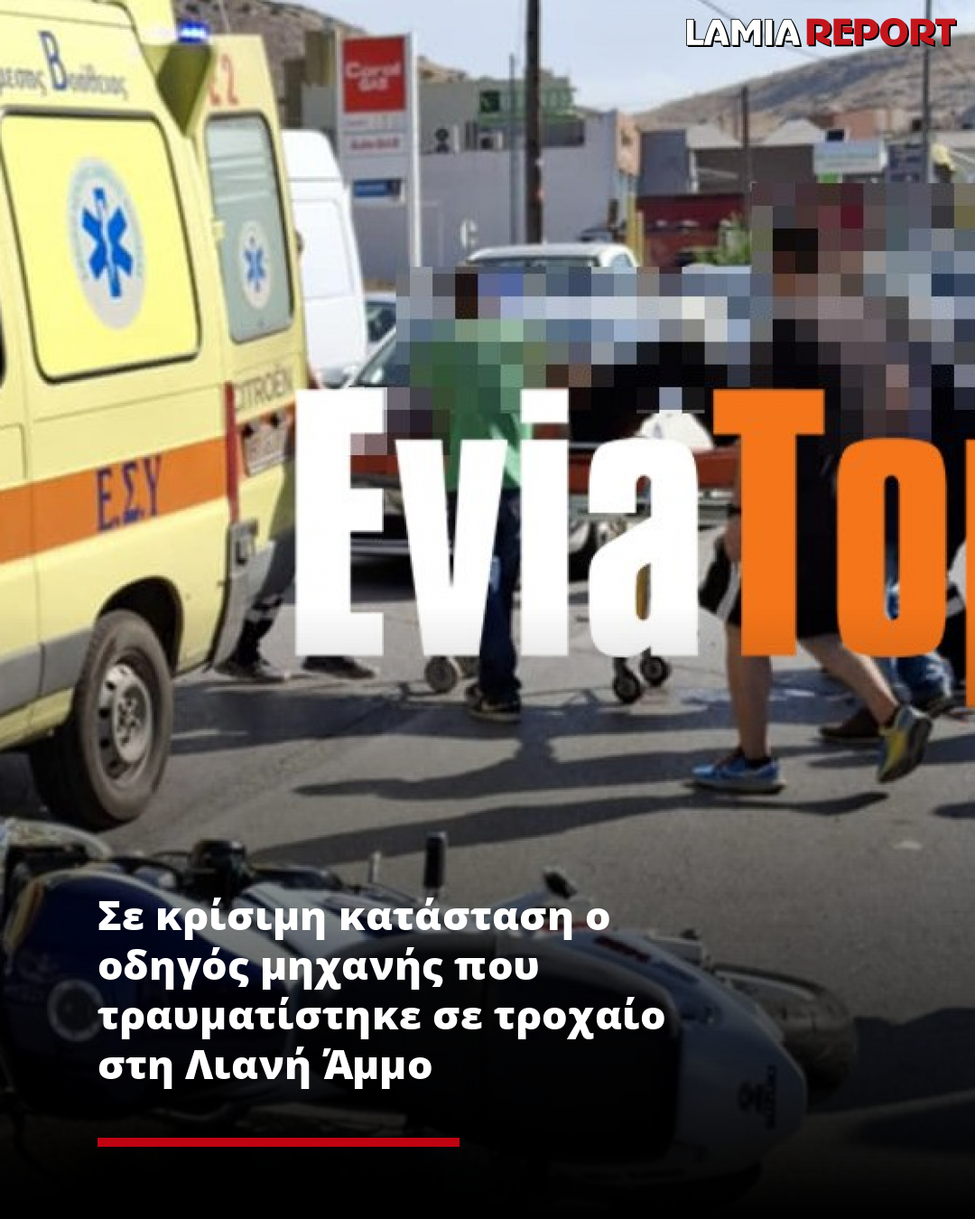 Σε κρίσιμη κατάσταση μεταφέρθηκε στο Νοσοκομείο Ερυθρός Σταυρός στην Αθήνα με κρανιοεγκεφαλικές κακώσεις ο οδηγός της μηχανής που συγκρούστηκε χθες με αυτοκίνητο στην Λιανή Άμμο.