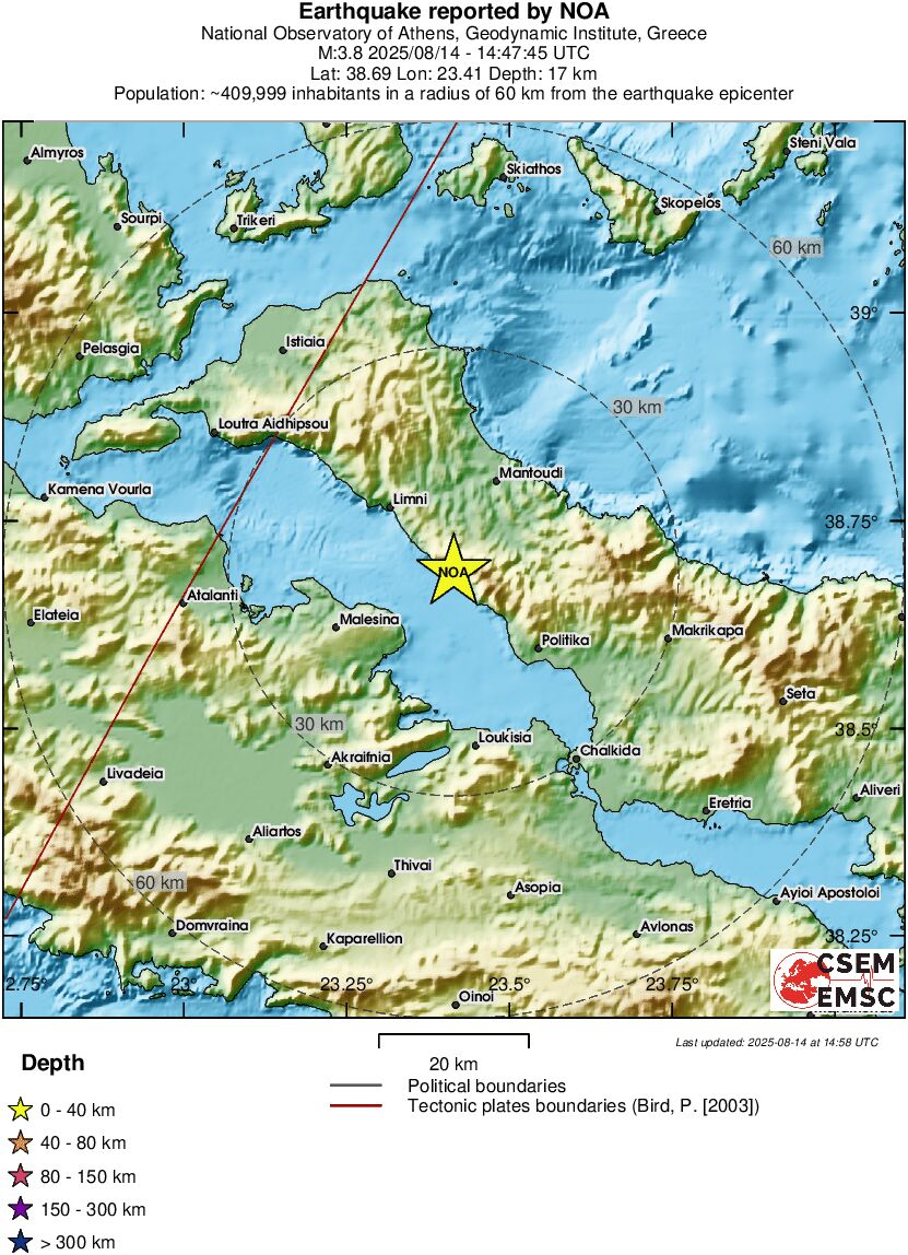 Σεισμός 3.5 Ρίχτερ στην Εύβοια απέναντι από τη Μαλεσίνα