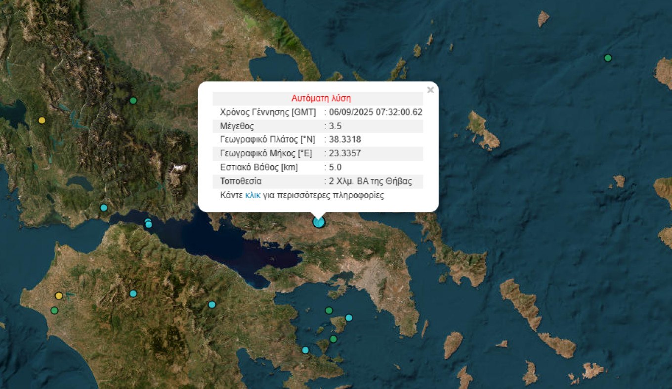 Σεισμός 3,5 Ρίχτερ στη Θήβα - Έγινε αισθητός και σε άλλες περιοχές της Στερεάς Ελλάδας