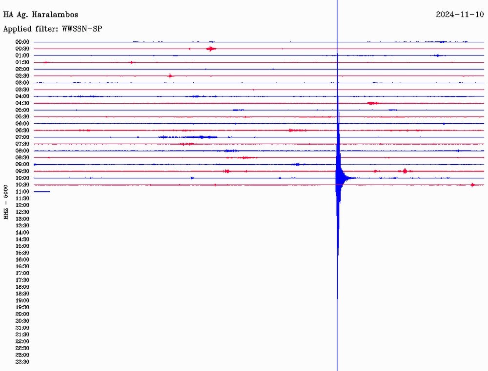 Δείτε και πως τον κατέγραψε ο σεισμογράφος που βρίσκεται στον Άγιο Χαράλαμπο Μώλου 30,9 χιλιόμετρα από το επίκεντρο.