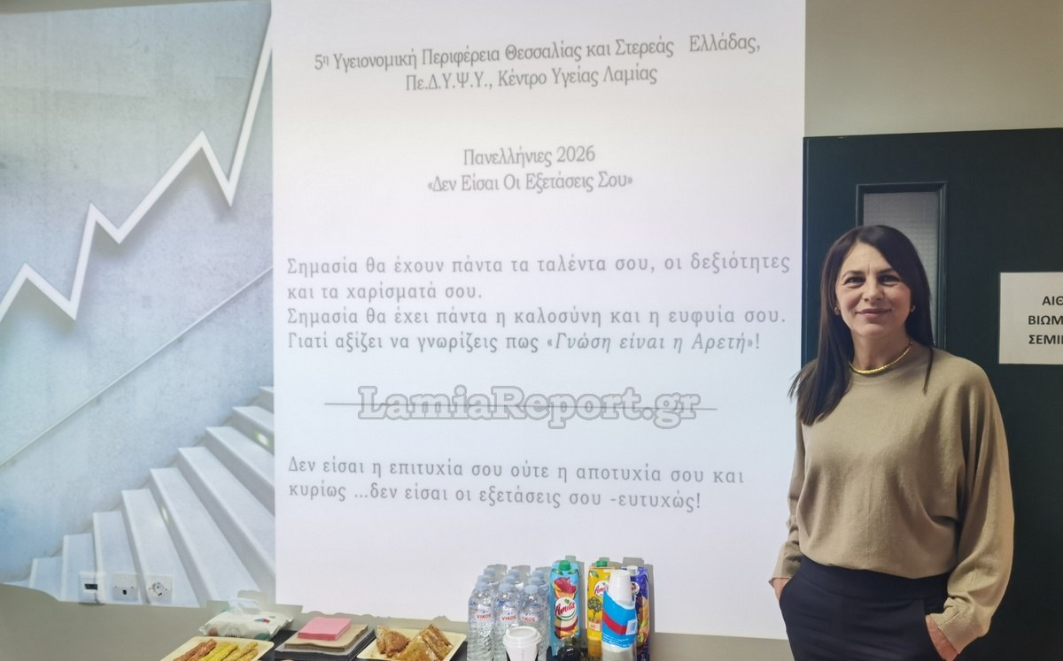 Μάλιστα επειδή βρισκόμαστε στην τελική ευθεία πριν τις Πανελλαδικές εξετάσεις, σε συνεργασία με την Περιφερειακή Διευθύντρια Εκπαίδευσης Στερεάς Ελλάδας Ελένη Μπενιάτα, έχει σχεδιαστεί μια ξεχωριστή δράση - παρέμβαση για τους μαθητές της Γ’ Λυκείου και τις οικογένειές τους.