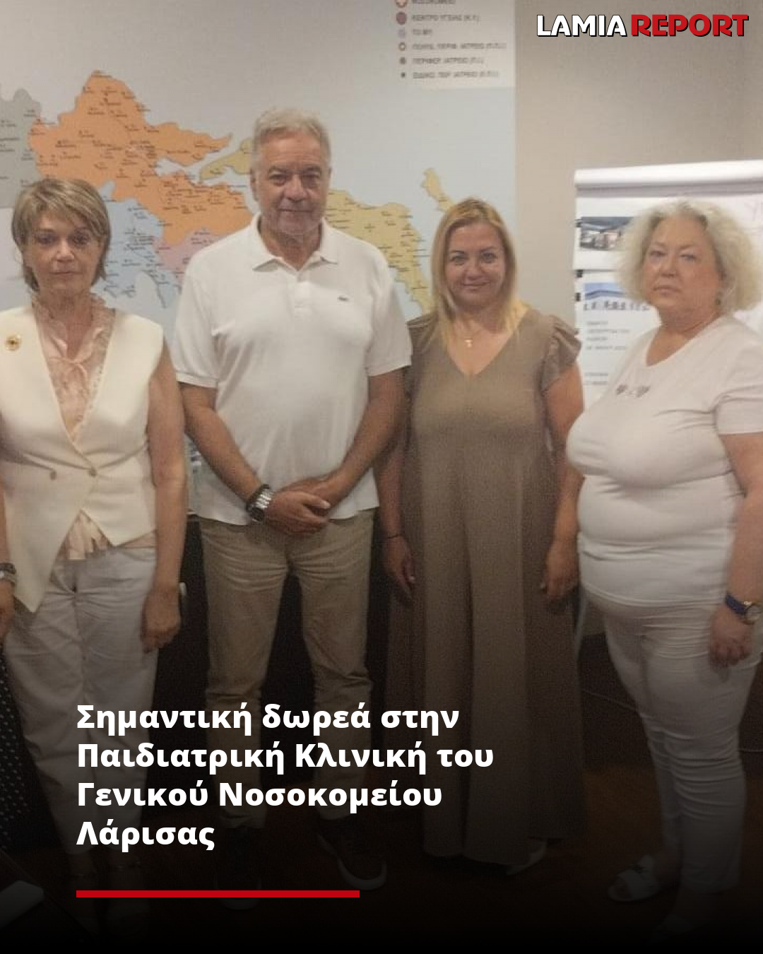 Σημαντική δωρεά στην Παιδιατρική Κλινική του Γενικού Νοσοκομείου Λάρισας