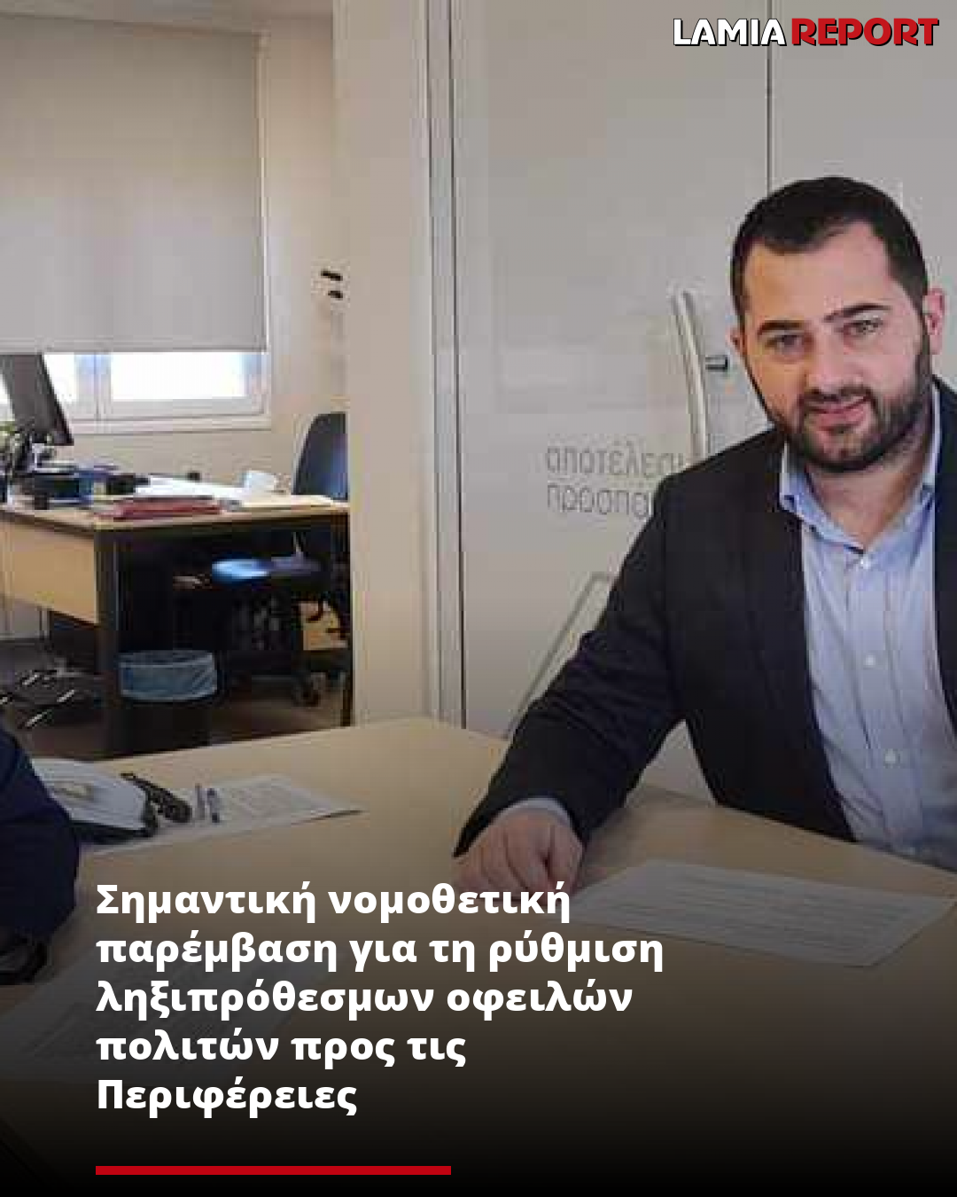 Με παρέμβαση της Περιφέρειας Στερεάς Ελλάδας συμπεριελήφθη στο σχέδιο Νόμου του Υπουργείου Εσωτερικών, διάταξη που αφορά την ρύθμιση ληξιπρόθεσμων οφειλών πολιτών προς τις Περιφέρειες.