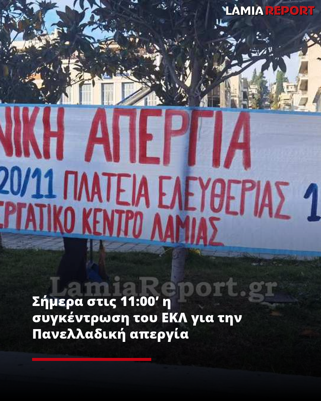 Με στόχο να αλλάξει η κατάσταση στη καθημερινότητα των λαϊκών οικογενειών και «με καθημερινή προσπάθεια στο δρόμο του αγώνα και της διεκδίκησης προς το συμφέρον της εργατικής τάξης και του λαού», το Εργατοϋπαλληλικό Κέντρο Λαμίας (ΕΚΛ) καλεί στη σημερινή συγκέντρωση στην πλατεία Ελευθερίας Λαμίας στις 11:00’ το πρωί την Τετάρτη 20 Νοεμβρίου 2024.