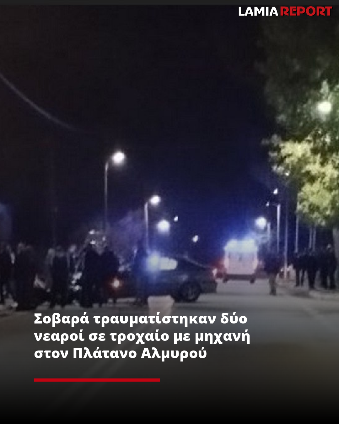Αποτέλεσμα της σύγκρουσης ήταν να εκτοξευθούν πολλά μέτρα στον αέρα και να τραυματιστούν σοβαρά οι δύο αναβάτες της μηχανής, οι οποίοι και μεταφέρθηκαν αρχικά στο ΚΥ Αλμυρού κι από εκεί στο «Αχιλλοπούλειο».