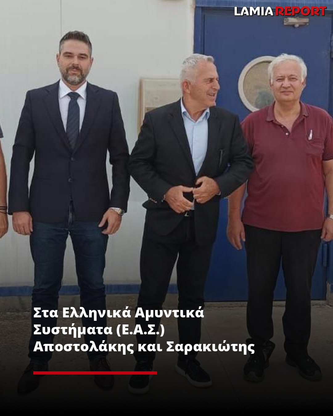 Τις εγκαταστάσεις των Ελληνικών Αμυντικών Συστημάτων (Ε.Α.Σ.) στο Λαύριο επισκέφθηκαν ο Βουλευτής Επικρατείας και Τομεάρχης Άμυνας του ΣΥ.ΡΙΖ.Α.-Προοδευτική Συμμαχία Ευάγγελος Αποστολάκης και ο Βουλευτής Φθιώτιδας και Κοινοβουλευτικός Εκπρόσωπος του κόμματος της Αξιωματικής Αντιπολίτευσης Γιάννης Σαρακιώτης.