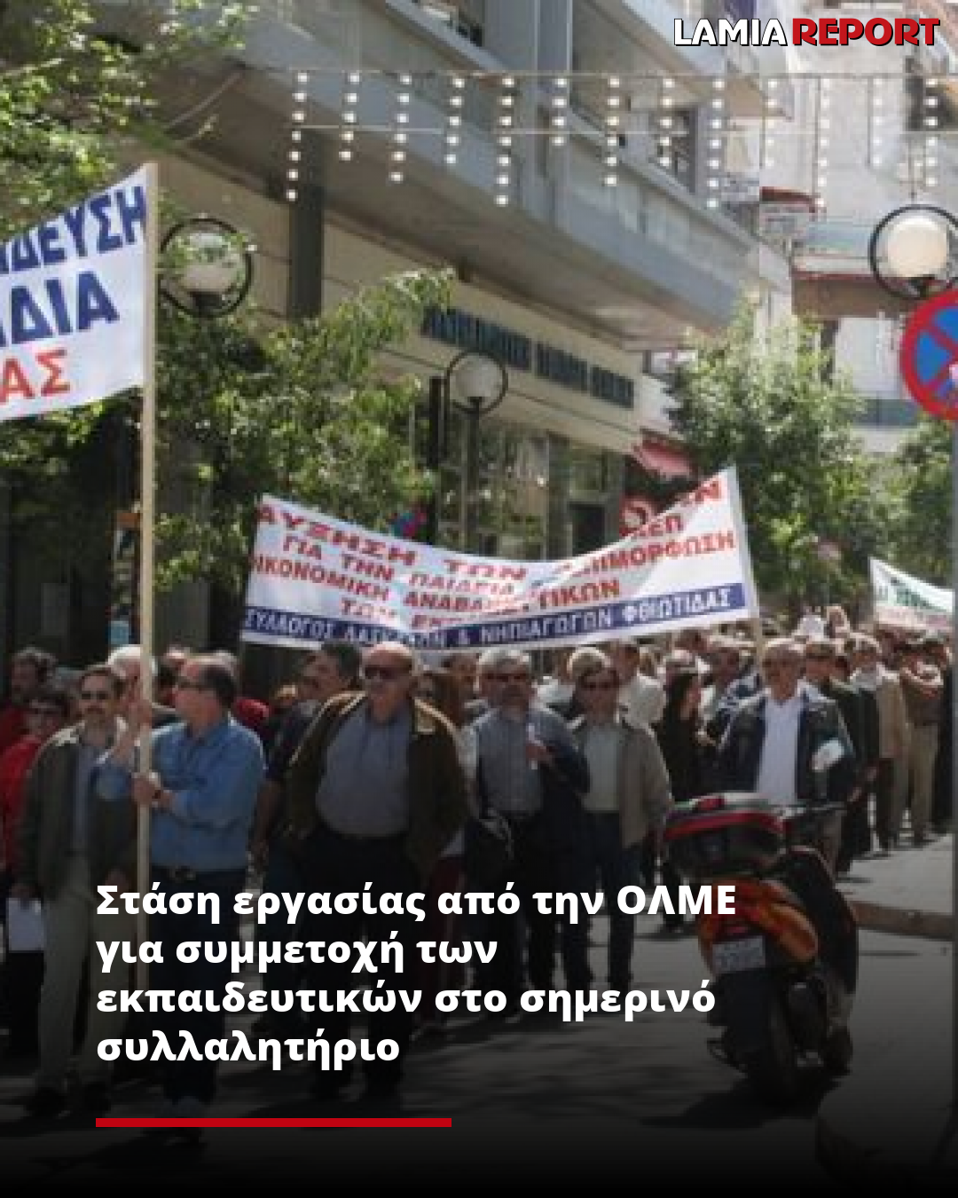 Στάση εργασίας πραγματοποιούν σήμερα από τις 11:00’ το πρωί οι Εκπαιδευτικοί της Δευτεροβάθμιας Εκπαίδευσης σύμφωνα με ανακοίνωση της ΟΛΜΕ με τη συμμετοχή και της ΕΛΜΕ Φθιώτιδας.