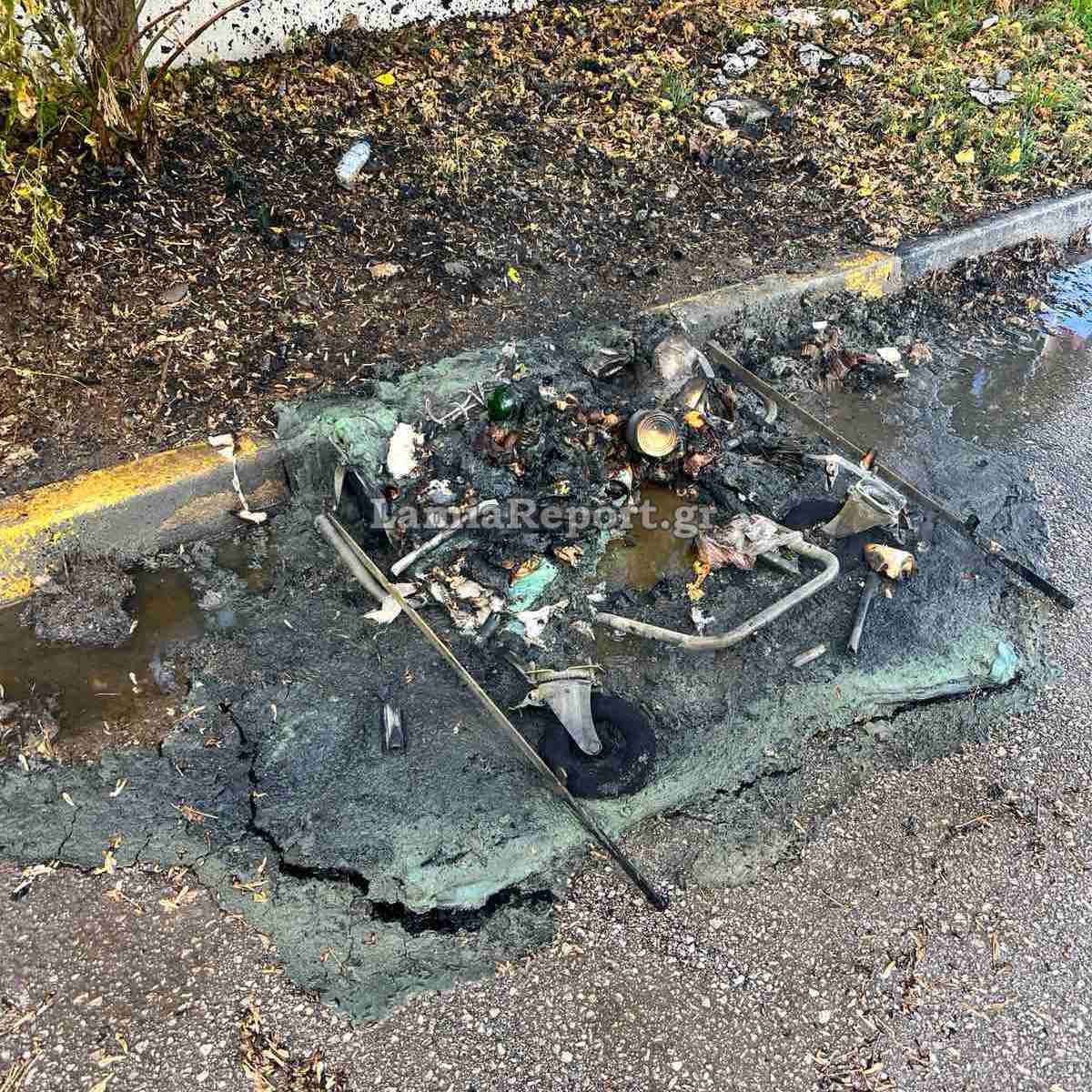 Στάχτη έγινε κάδος απορριμμάτων στη νότια Λαμία (ΦΩΤΟ)
