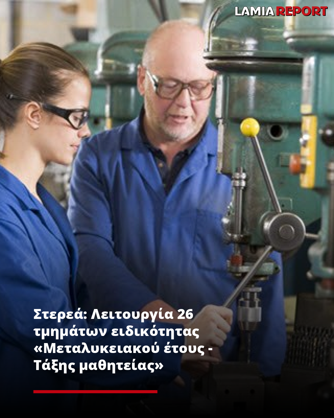 Τη λειτουργία 26 τμημάτων ειδικότητας του «Μεταλυκειακού έτους - Τάξης μαθητείας» σε ΕΠΑ.Λ./Ε.Κ. της περιφέρειας αποφάσισε η Περιφερειακή Διεύθυνση Πρωτοβάθμιας και Δευτεροβάθμιας Εκπαίδευσης Στερεάς Ελλάδας.