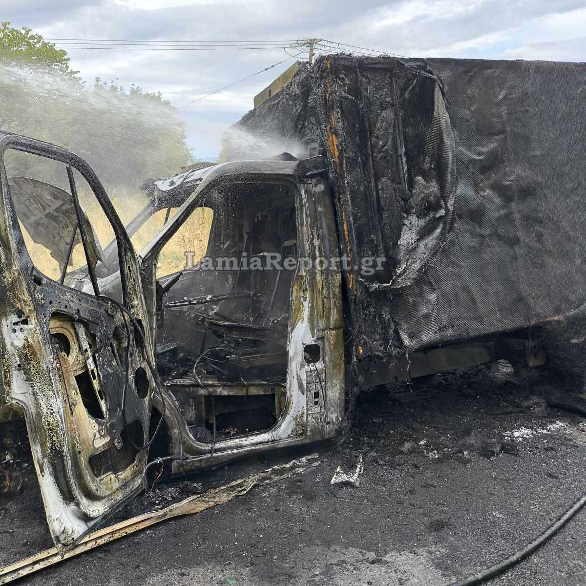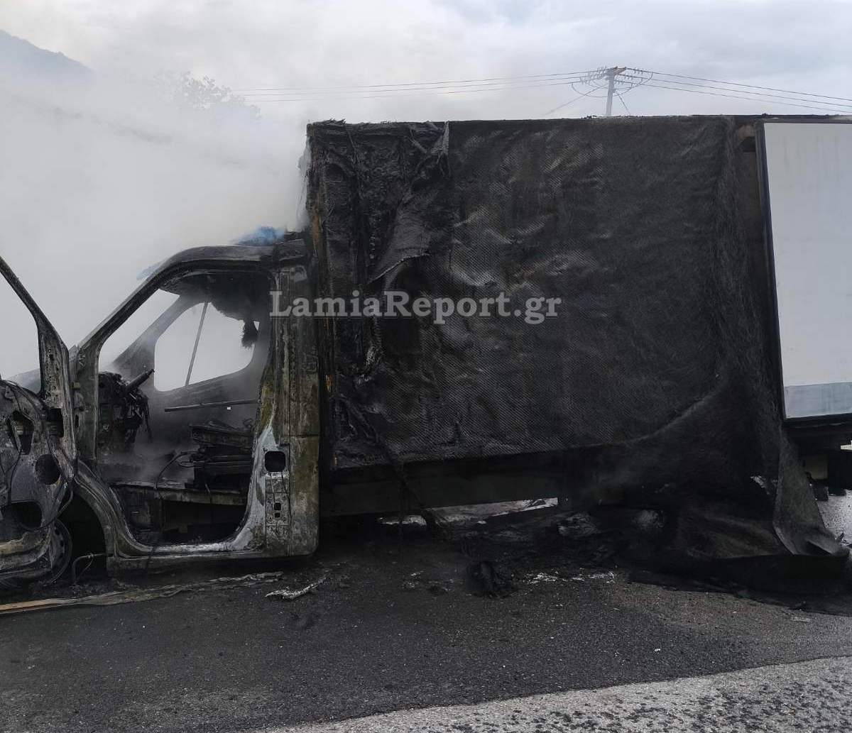 Παρανάλωμα του πυρός έγινε μικρό φορτηγό - ψυγείο που κινούνταν στην εθνική οδό Θερμοπυλών - Ιτέας στο ύψος του Μπράλου το μεσημέρι της Δευτέρας (6/10/25).