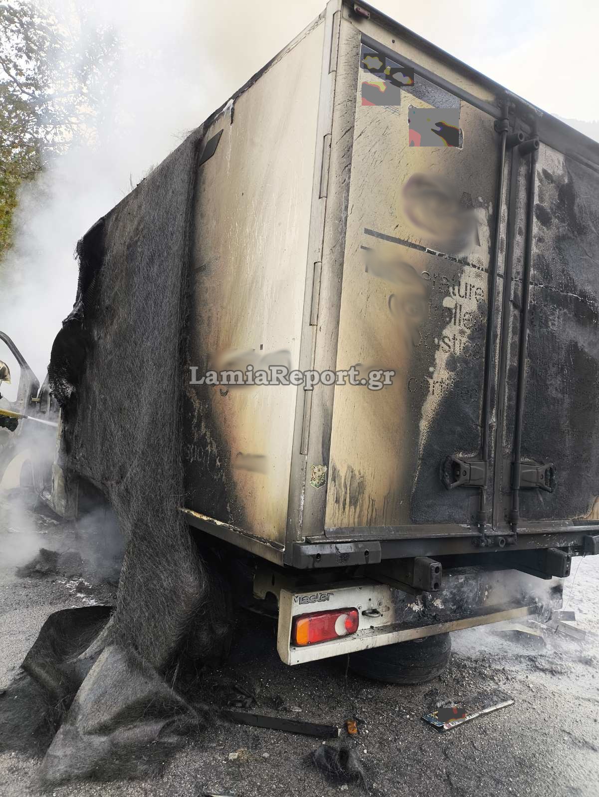 Στις φλόγες παραδόθηκε φορτηγό έξω από τη Λαμία (ΦΩΤΟ)