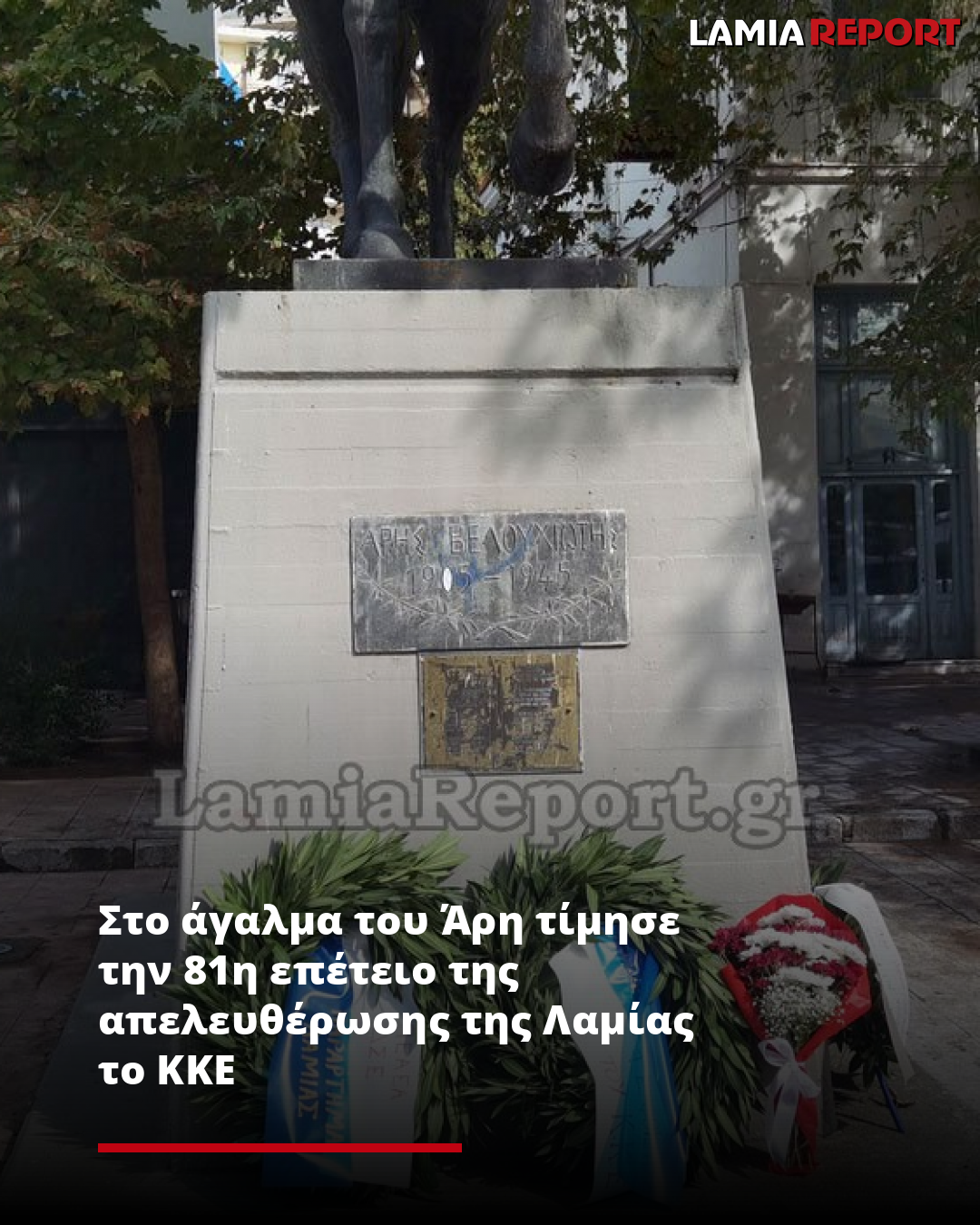 Η Τομεακή Επιτροπή Φθιώτιδας του ΚΚΕ και το Παράρτημα Λαμίας της ΠΕΑΕΑ – ΔΣΕ, τίμησαν την 81η επέτειο της απελευθέρωσης της Λαμίας από τις δυνάμεις του ΕΛΑΣ στις 18 Οκτώβρη 1944, με εκδήλωση τιμής και μνήμης το Σάββατο (18/10/25) το πρωί στην Πλατεία Λαού, μπροστά στο άγαλμα του πρωτοκαπετάνιου Άρη Βελουχιώτη.