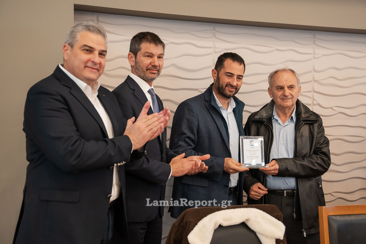 Ακολούθως ο Περιφερειάρχης Φάνης Σπανός μαζί με τον χωρικό Αντιπεριφερειάρχη Φθιώτιδας Ηλία Σανίδα και τον υπεύθυνο για αγροτικά θέματα Αντιπεριφερειάρχη Κωνσταντίνο Αποστολόπουλο, τίμησαν με αναμνηστική πλακέτα, τον αφυπηρετήσαντα Διευθυντή Αγροτικής & Αλιευτικής Πολιτικής και Αν. Προϊστάμενο της Γεν. Διεύθυνσης Περιφερειακής Αγροτικής Οικονομίας & Κτηνιατρικής Κωνσταντίνο Κούτρα.