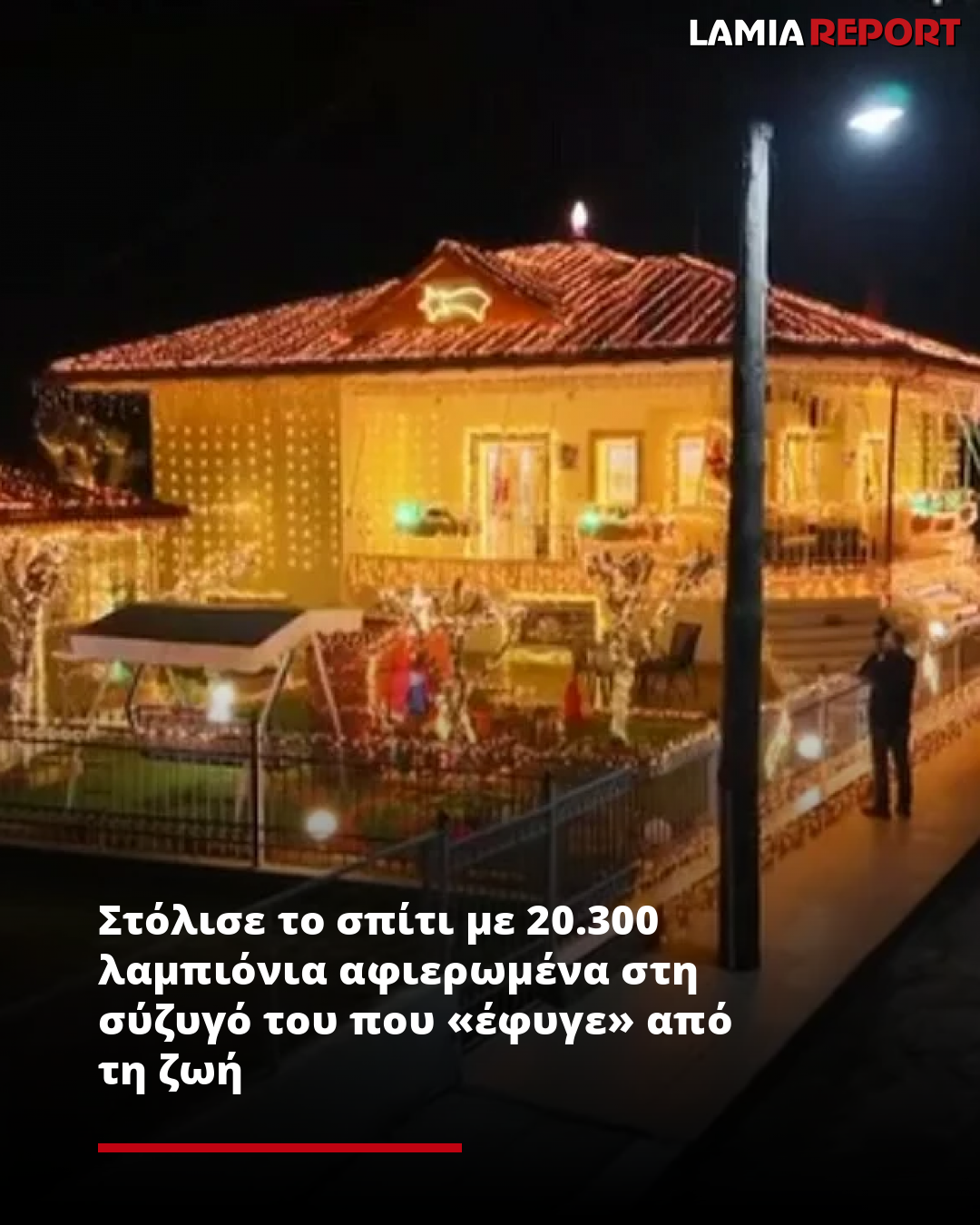 Θέλοντας να αποτίσει φόρο τιμής στη γυναίκα του, που έφυγε από τη ζωή πέρυσι μετά τις εορτές, ο Γιάννης Φούκης από την Καρδίτσα, στόλισε με 20.300 λαμπιόνια το σπίτι του.