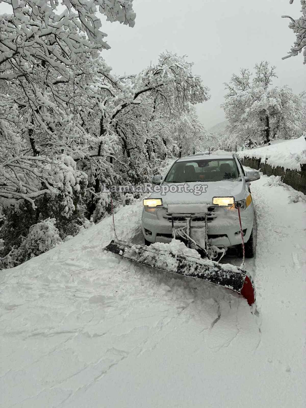 Στα ορεινά χωριά από τον Τυμφρηστό μέχρι τα Βαρδούσια και τη Σαράνταινα, το χιόνι ξεπέρασε τους 40 πόντους, με τα εκχιονιστικά να ενεργούν αδιάλειπτα από τα μεσάνυχτα ώστε να έχουν υπό έλεγχο την κατάσταση.