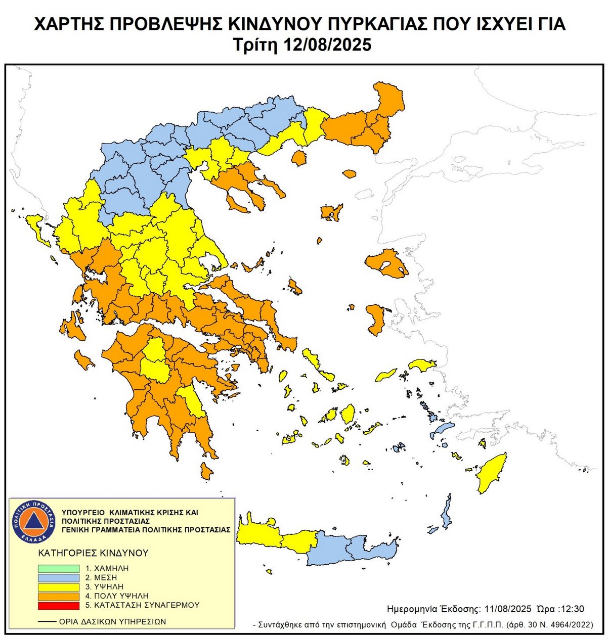 Ενδεικτικά η Λοκρίδα είναι και πάλι στην κατηγορία κινδύνου «4» (πορτοκαλί χρώμα στο χάρτη), όπως και η υπόλοιπη Στερεά Ελλάδα (πλην Ευρυτανίας) και η μισή σχεδόν χώρα.