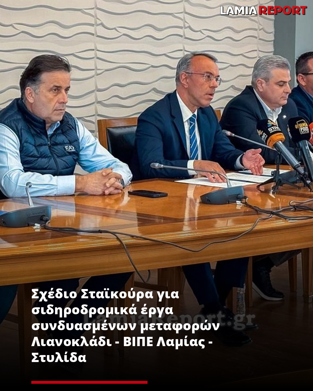 Την πρωτοβουλία του για σχεδιασμό σιδηροδρομικών έργων, συνδυασμένων μεταφορών στην κεντρική Ελλάδα και ειδικότερα, στην περιοχή Λιανοκλαδίου - Λαμίας - ΒΙΠΕ Λαμίας και Στυλίδας, παρουσίασε το μεσημέρι της Τετάρτης (4/3/26) στους δημοσιογράφους ο Βουλευτής Φθιώτιδας Χρήστος Σταϊκούρας, παρουσία εκπροσώπων εμπλεκόμενων φορέων, όπως ο Αντιπεριφερειάρχης ΠΕ Φθιώτιδας Ηλίας Σανίδας, ο Δήμαρχος Στυλίδας Γιάννης Αποστόλου, ο Αντιδήμαρχος Λαμιέων Δημήτρης Κυρίτσης, ο Πρόεδρος του Επιμελητηρίου Φθιώτιδας Χρυσόστομος Καρέλλης και ο Πρόεδρος του Λιμενικού Ταμείου Φθιώτιδας Γιάννης Πρεμέτης.