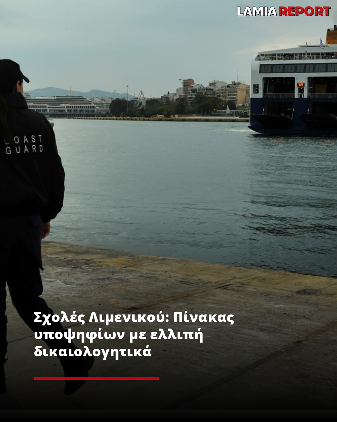 Η αρμόδια Επιτροπή Παραλαβής και Ελέγχου Δικαιολογητικών ανακοινώνει ότι εκδόθηκε Πίνακας υποψηφίων με ελλιπή δικαιολογητικά του διαγωνισμού για την εισαγωγή ιδιωτών στις Σχολές Δοκίμων Σημαιοφόρων Λ.Σ.-ΕΛ.ΑΚΤ. και Δόκιμων Λιμενοφυλάκων, το ακαδημαϊκό έτος 2025-2026, με το σύστημα των Πανελλαδικών Εξετάσεων.