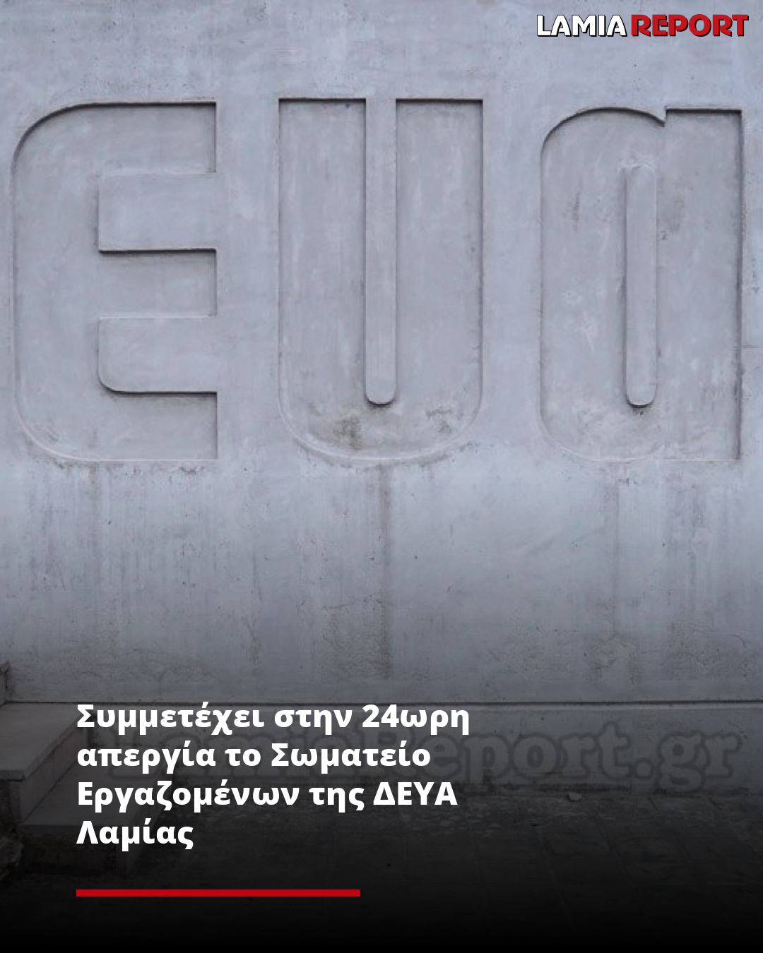 Συμμετέχει στην 24ωρη απεργία το Σωματείο Εργαζομένων της ΔΕΥΑ Λαμίας