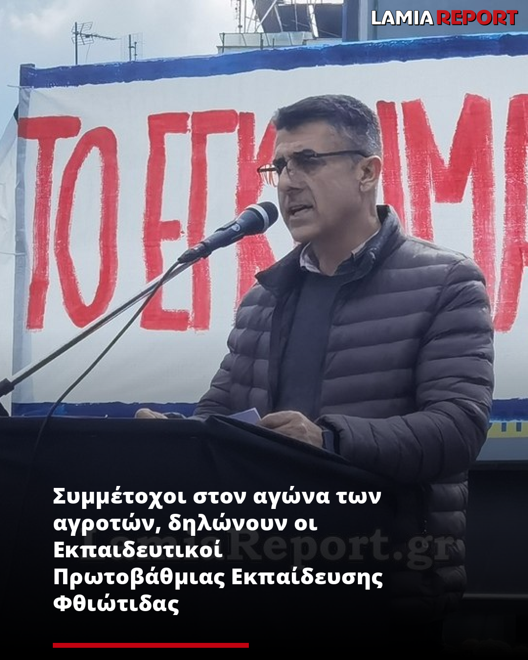 Τη στήριξη τους στον αγώνα των αγροτών, διαμηνύουν σε όλους τους τόνους οι Εκπαιδευτικοί Πρωτοβάθμιας Εκπαίδευσης Φθιώτιδας.