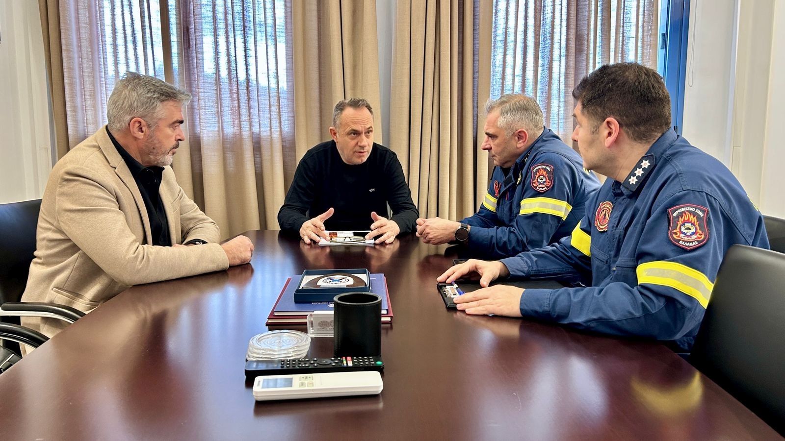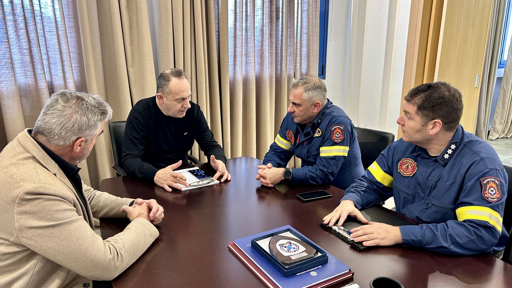 Στο πλαίσιο της πρώτης αυτής συνάντησης, έγινε συζήτηση για θέματα που αφορούν την πυροπροστασία, την πρόληψη και την ετοιμότητα ενόψει της νέας αντιπυρικής περιόδου, καθώς και την ενίσχυση της συνεργασίας μεταξύ του Δήμου μας και της Πυροσβεστικής Υπηρεσίας για την προστασία των πολιτών και του φυσικού περιβάλλοντος.