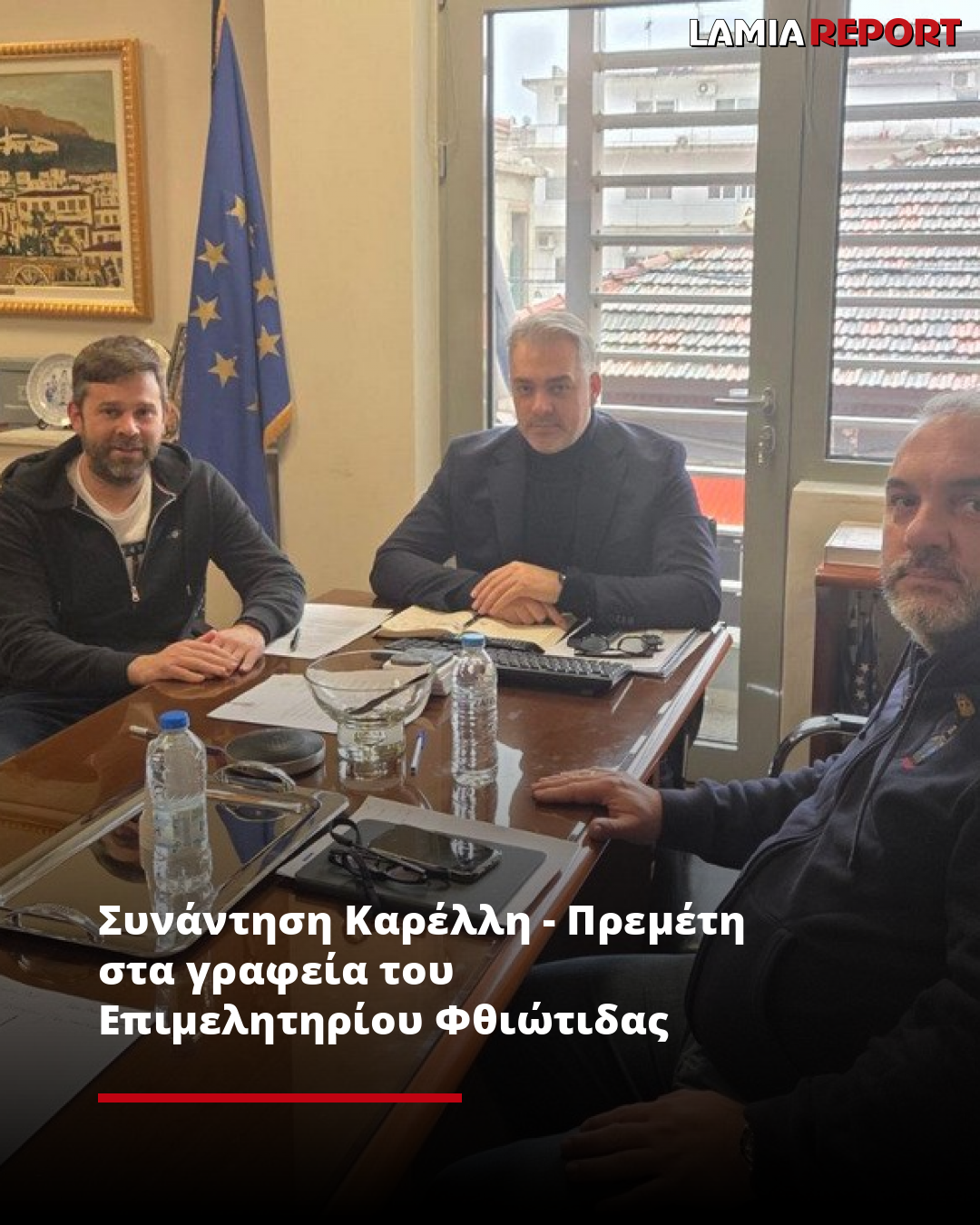 Συνάντηση με τον Πρόεδρο του Λιμενικού Ταμείου Φθιώτιδας, Γιάννη Πρεμέτη είχε ο Πρόεδρος του Επιμελητηρίου Φθιώτιδας Χρυσόστομος Καρέλλης στο πλαίσιο της ενίσχυσης της συνεργασίας για την τουριστική και αναπτυξιακή προοπτική της Φθιώτιδας.