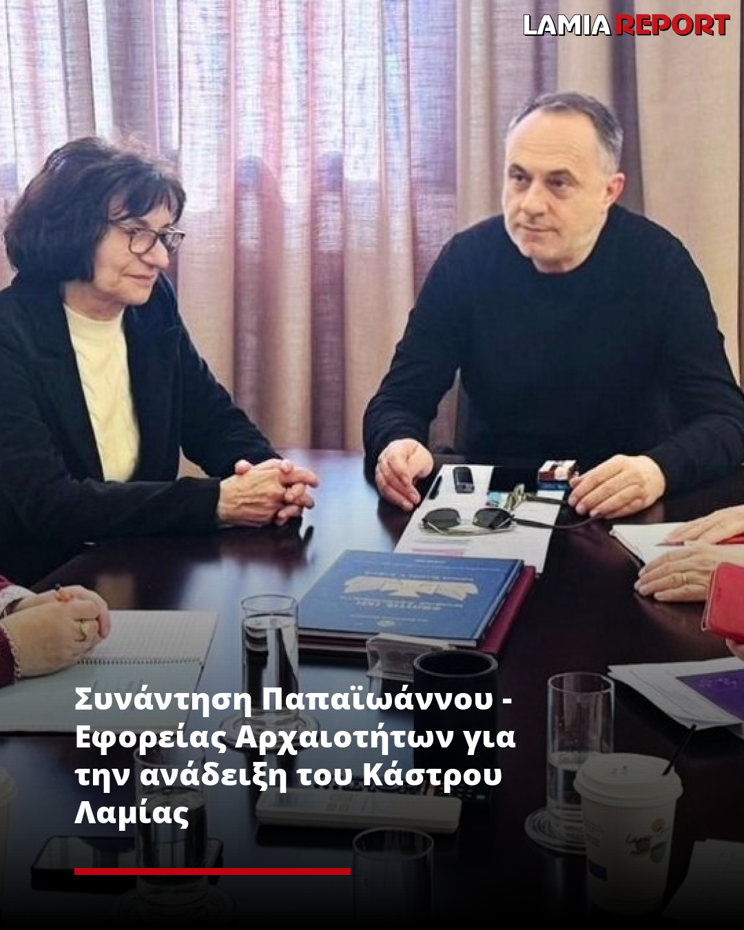 Συνάντηση με στόχο την ενημέρωση για την πρόοδο των εργασιών και τη συνεργασία για την ανάδειξη του Κάστρου Λαμίας πραγματοποιήθηκε σήμερα, Δευτέρα 2 Φεβρουαρίου 2026, στο Δημαρχείο Λαμίας, με πρωτοβουλία του Δημάρχου Πανουργιά Παπαϊωάννου.