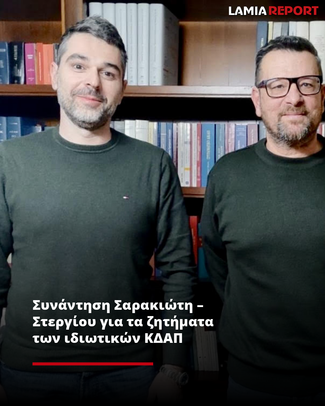 Τα μείζονος σημασίας ζητήματα που απασχολούν τον κλάδο των ιδιωτικών Κέντρων Δημιουργικής Απασχόλησης (ΚΔΑΠ) της Π.Ε. Φθιώτιδας τέθηκαν στο επίκεντρο της συνάντησης που πραγματοποιήθηκε ανάμεσα στον Πρόεδρο του Πανελλήνιου Συλλόγου Ιδιωτικών ΚΔΑΠ «Αγωγή», Γεώργιο Στεργίου και τον Βουλευτή Φθιώτιδας, Γιάννη Σαρακιώτη