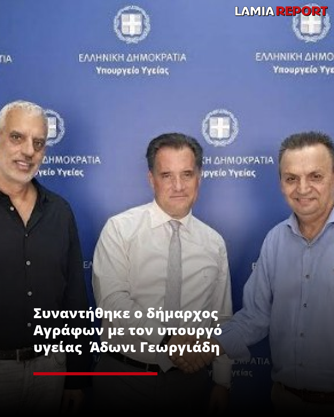 Προγραμματισμένη συνάντηση με τον Υπουργό Υγείας κ.'Αδωνι Γεωργιάδη, παρουσία του Καθηγητή Υγείας του Πανεπιστημίου Δυτικής Αττικής κ. Γιάννη Κουμπούρου, είχε χθες Τετάρτη 25 Σεπτεμβρίου, ο Δήμαρχος Αγράφων κ. Αλέξης Καρδαμπίκης.