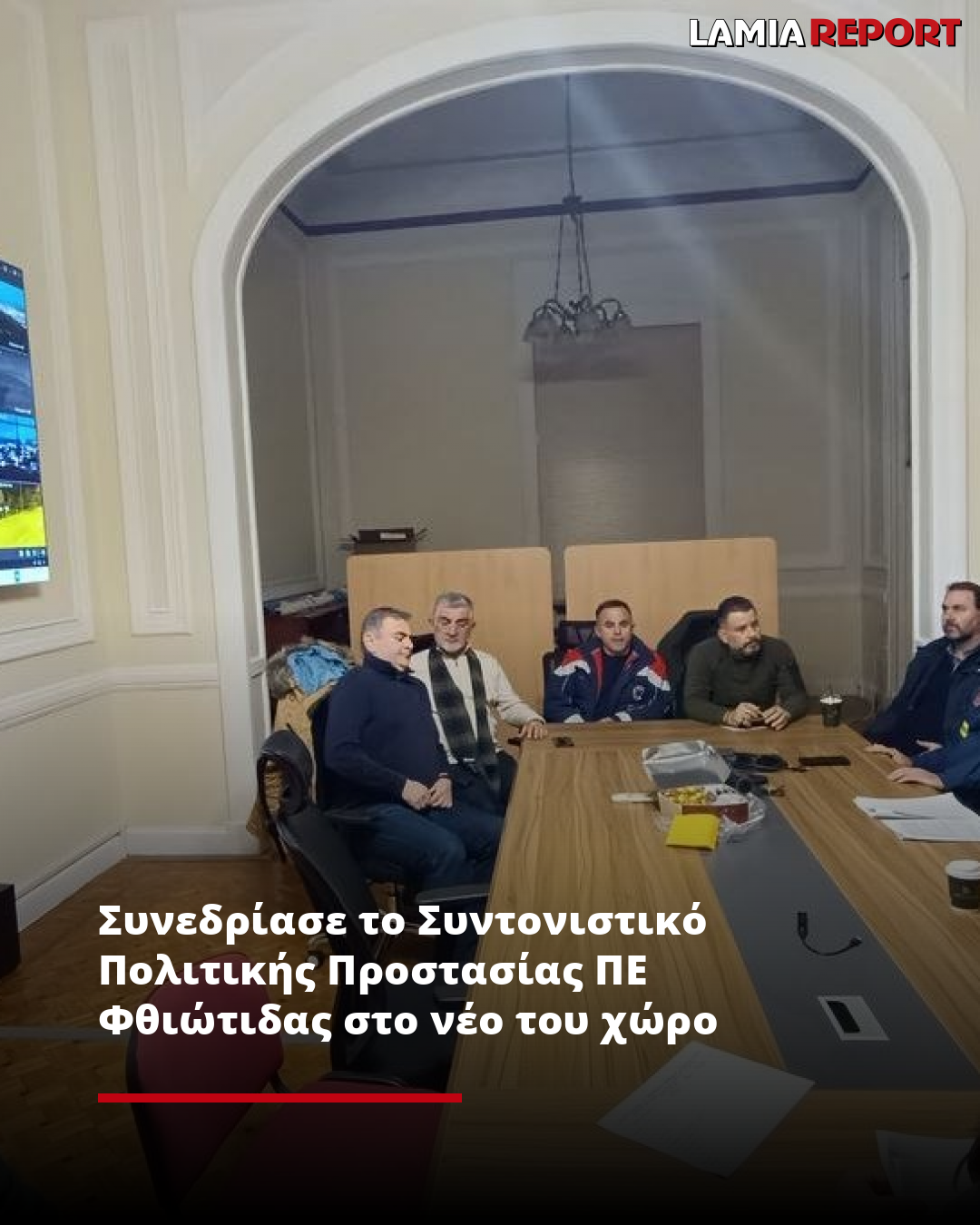 Πραγματοποιήθηκε, σήμερα Δευτέρα 19 Ιανουαρίου 2026, έκτακτη συνεδρίαση του ΠΕ.Σ.Ο.Π.Π. της Π.Ε. Φθιώτιδας από τον Αντιπεριφερειάρχη Φθιώτιδας Ηλία Κ. Σανίδα, στο Διοικητήριο της Π.Ε. Φθιώτιδας στην Λαμία – Πλ. Ελευθερίας 13 και για πρώτη φορά η συνεδρίαση πραγματοποιήθηκε στο νέο Συντονιστικό Κέντρο Πολιτικής Προστασίας της Π.Ε. Φθιώτιδας που πρόσφατα ολοκληρώθηκε.