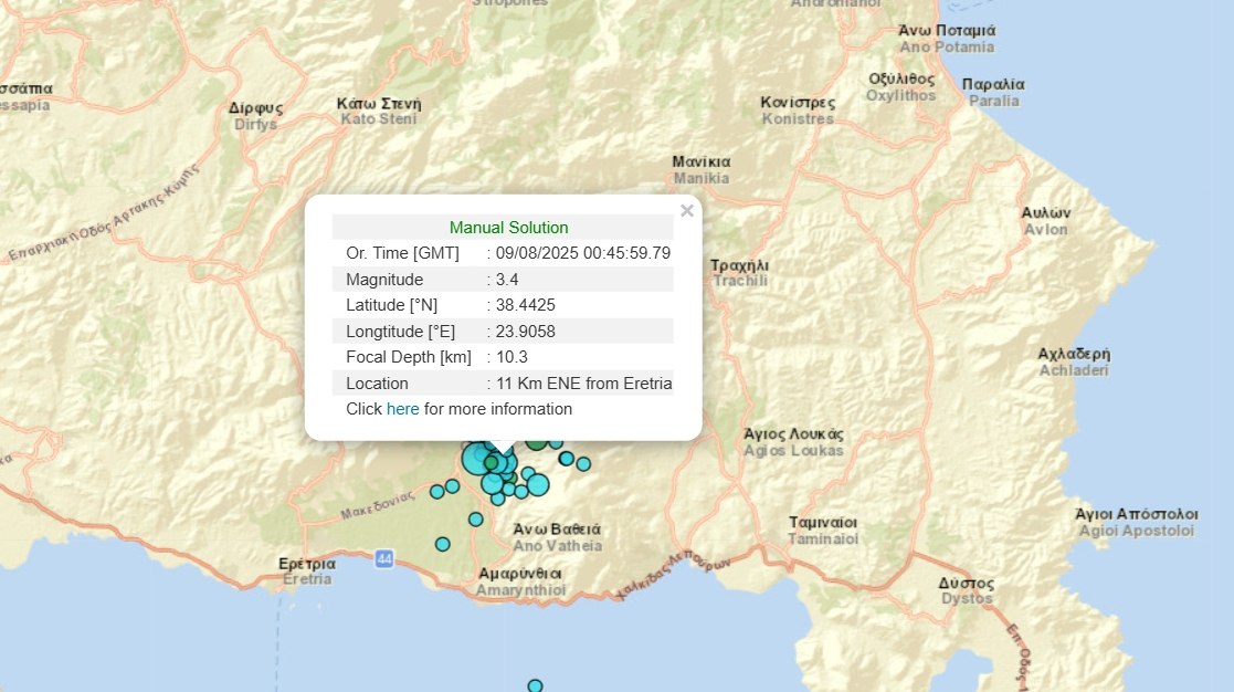 Συνεχίζει να «κουνάει» στην Εύβοια - Σεισμός 3,4 Ρίχτερ το πρωί
