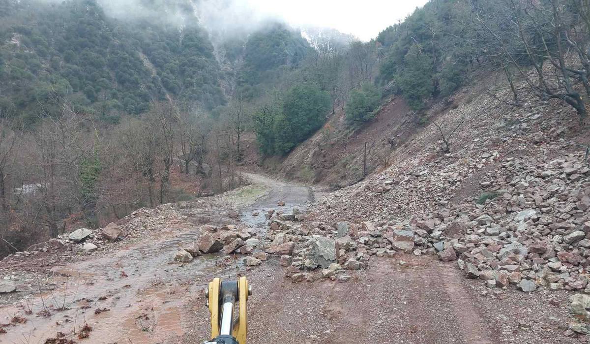 Με έντονες βροχοπτώσεις όλη τη νύχτα, πτώσεις βράχων και κατολισθήσεις, λίγα χιόνια στα ορεινά, εξελίσσεται η κακοκαιρία στον δήμο Αγράφων.