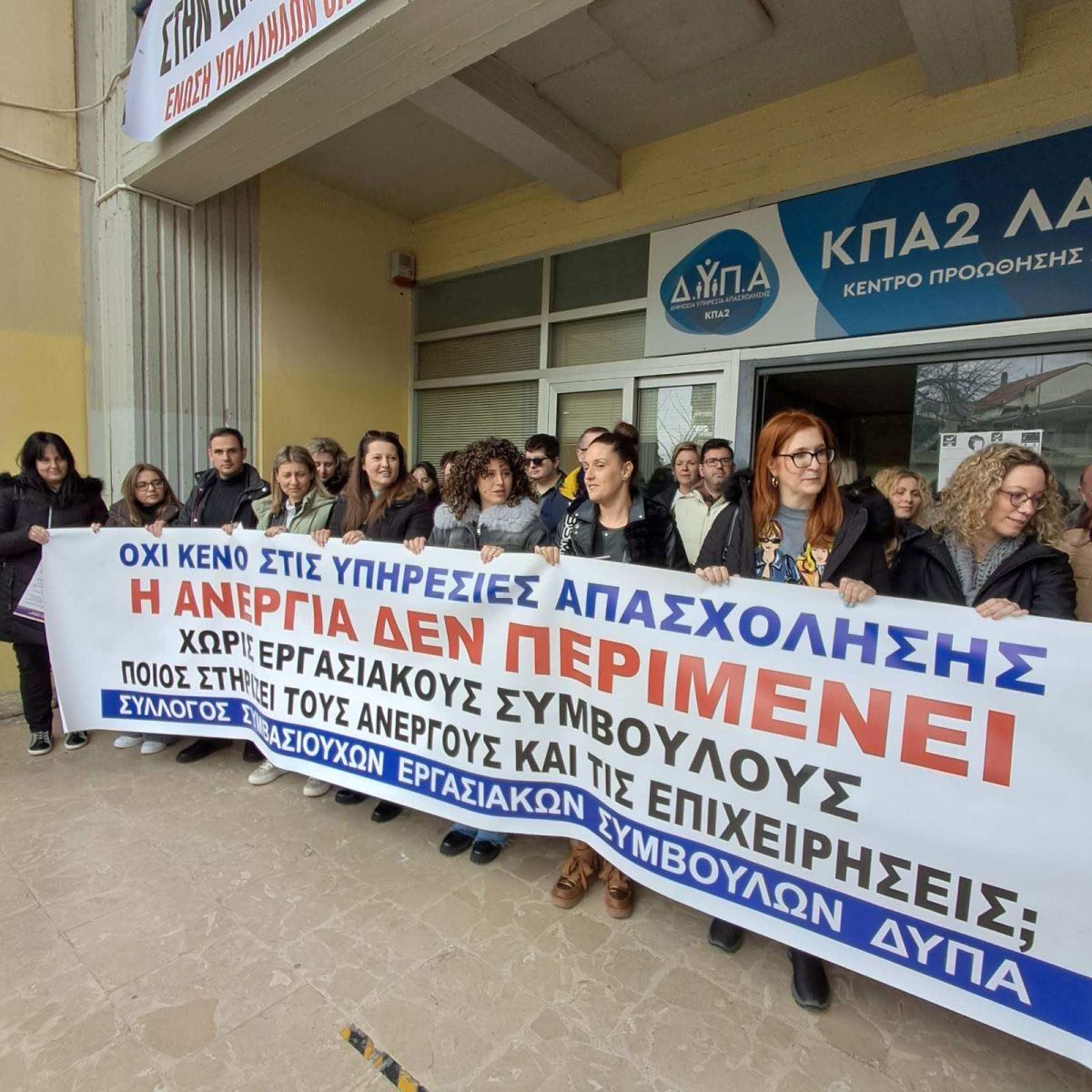 Στη Λάρισα βρέθηκαν το μεσημέρι της Παρασκευής (20/03), οι συμβασιούχοι του ΚΠΑ2 Λαμίας της ΔΥΠΑ, συμμετέχοντας στις κινητοποιήσεις των Συμβασιούχων Εργασιακών Συμβούλων.