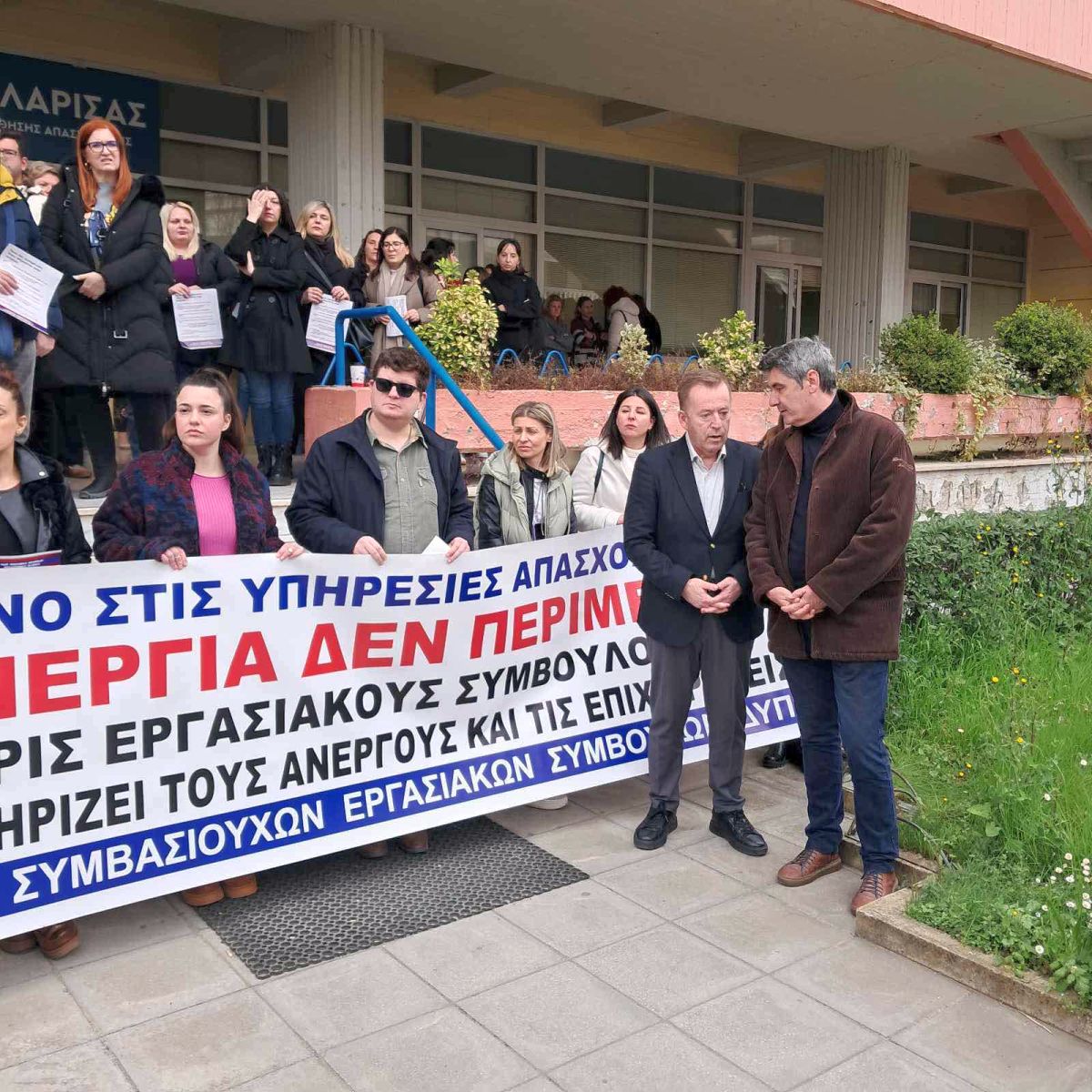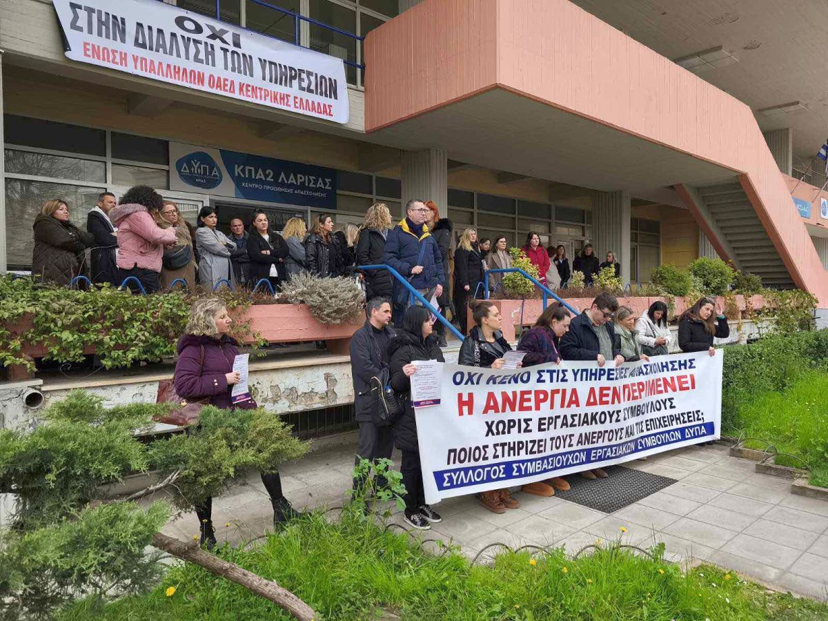 Στο πλαίσιο αυτό, οι κινητοποιήσεις των ανθρώπων συνεχίζονται και σήμερα βρέθηκαν στη Λάρισα, για να στηρίξουν τους εργασιακούς συμβούλους συναδέλφους τους.