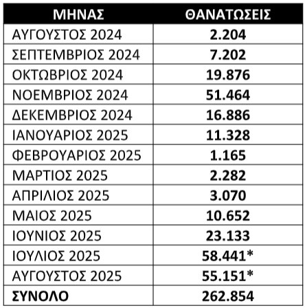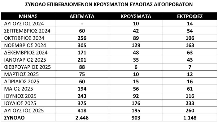 ΜΗΝΙΑΙΑ ΣΤΟΙΧΕΙΑ ΕΠΙΒΕΒΑΙΩΜΕΝΩΝ ΚΡΟΥΣΜΑΤΩΝ ΕΥΛΟΓΙΑΣ ΑΙΓΟΠΡΟΒΑΤΩΝ – ΑΥΓΟΥΣΤΟΣ 2025