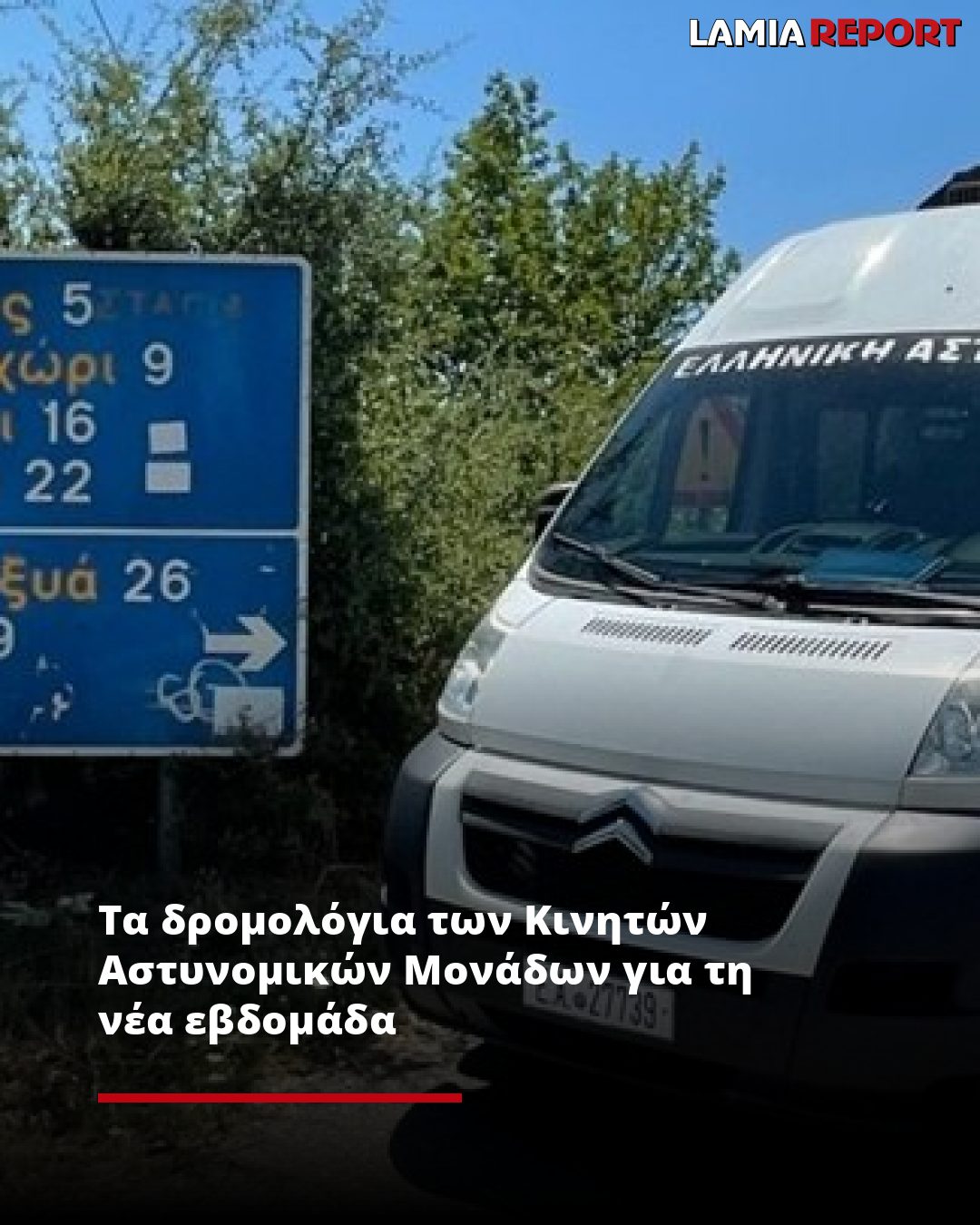 Η Γενική Περιφερειακή Αστυνομική Διεύθυνση Στερεάς Ελλάδας, έδωσε στην δημοσιότητα το πρόγραμμα με τα δρομολόγια των Κινητών Αστυνομικών Μονάδων (Κ.Α.Μ.), ανά Διεύθυνση Αστυνομίας και για την εβδομάδα από 24 έως 29 Νοεμβρίου 2025. Αναλυτικά: