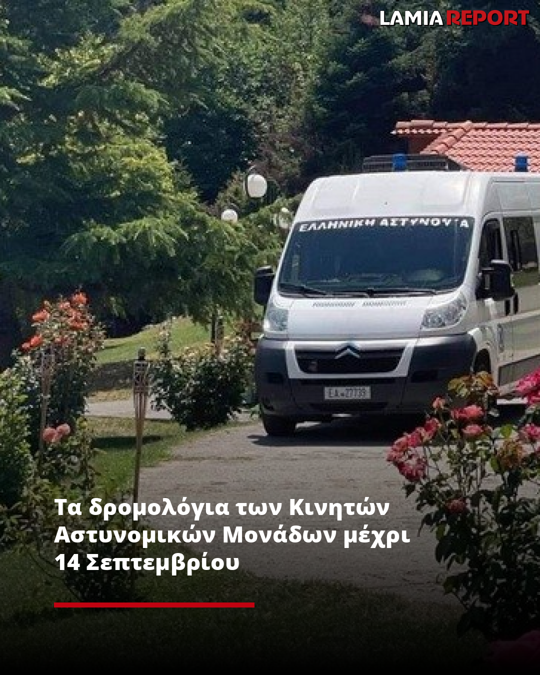 Η Γενική Περιφερειακή Αστυνομική Διεύθυνση Στερεάς Ελλάδας, έδωσε στη δημοσιότητα, ανά Διεύθυνση Αστυνομίας τα δρομολόγια των Κινητών Αστυνομικών Μονάδων (Κ.Α.Μ.), για την εβδομάδα από 8 έως 14 Σεπτεμβρίου 2025. Αναλυτικά: