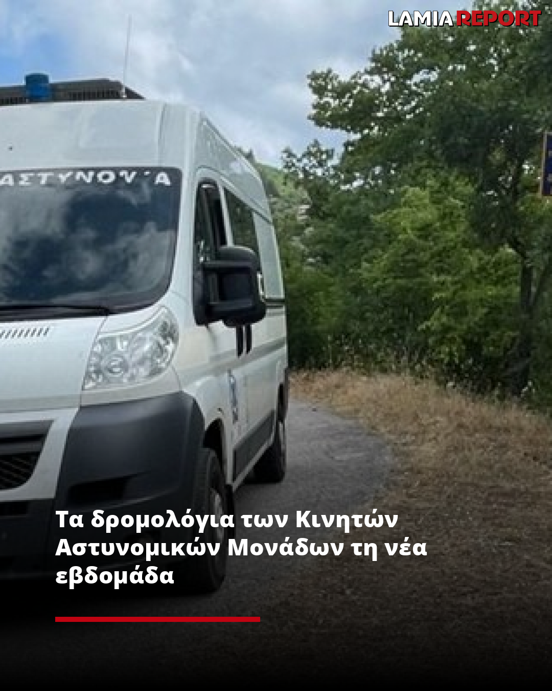 Τα δρομολόγια των Κινητών Αστυνομικών Μονάδων (Κ.Α.Μ.), ανά Διεύθυνση Αστυνομίας, ανακοίνωσε η Γενική Περιφερειακή Αστυνομική Διεύθυνση Στερεάς Ελλάδας για το διάστημα από Δευτέρα 17 έως Σάββατο 22 Μαρτίου 2025. Αναλυτικά: