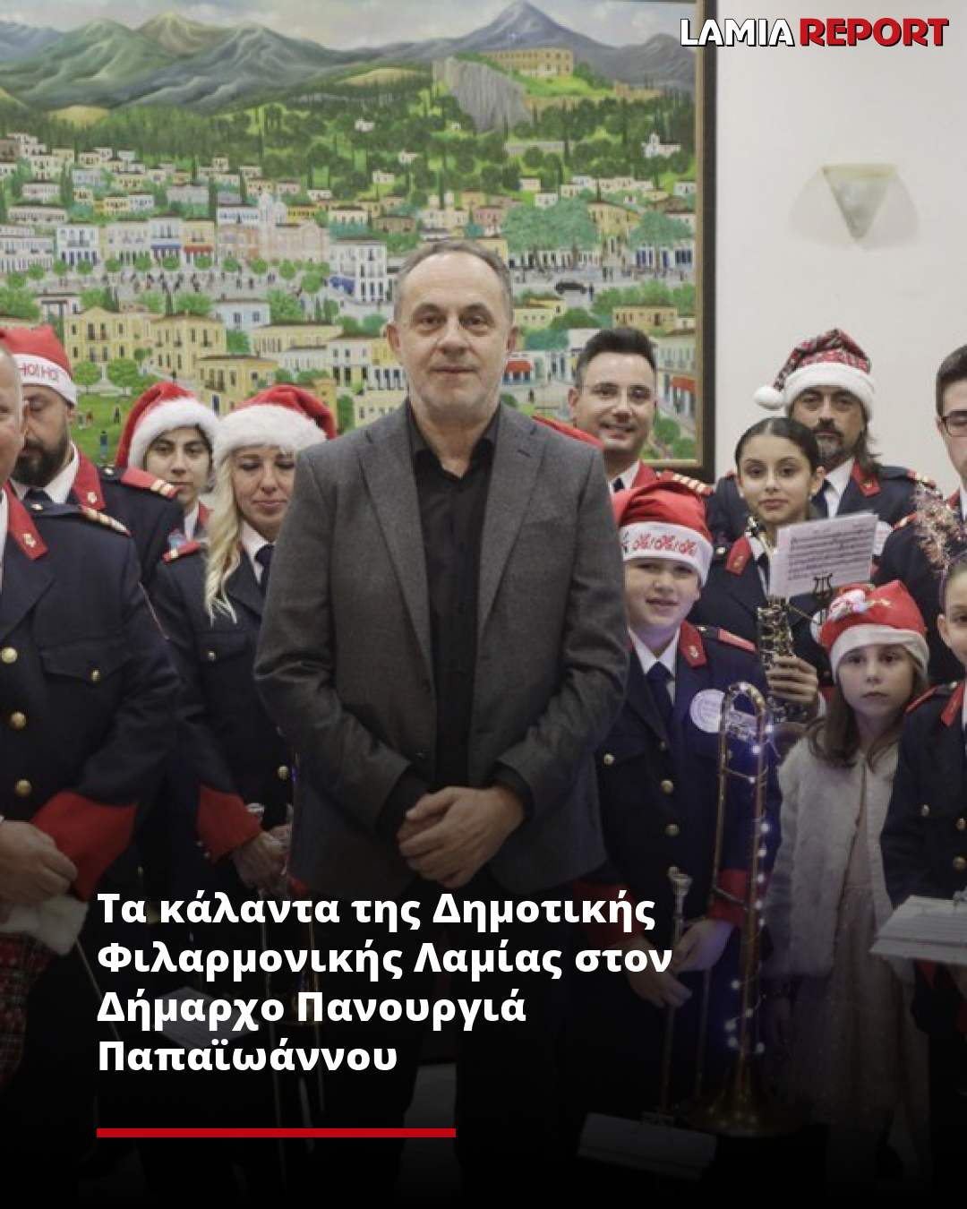 Τα κάλαντα της Δημοτικής Φιλαρμονικής Λαμίας στον Δήμαρχο Πανουργιά Παπαϊωάννου