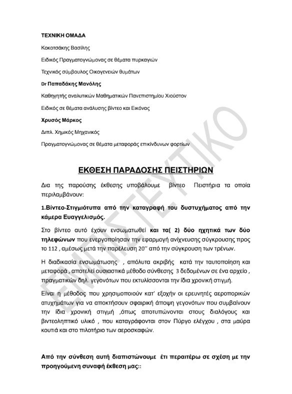 Η συμπληρωματική έκθεση του κ. Κοκοτσάκη και της τεχνικής ομάδας: