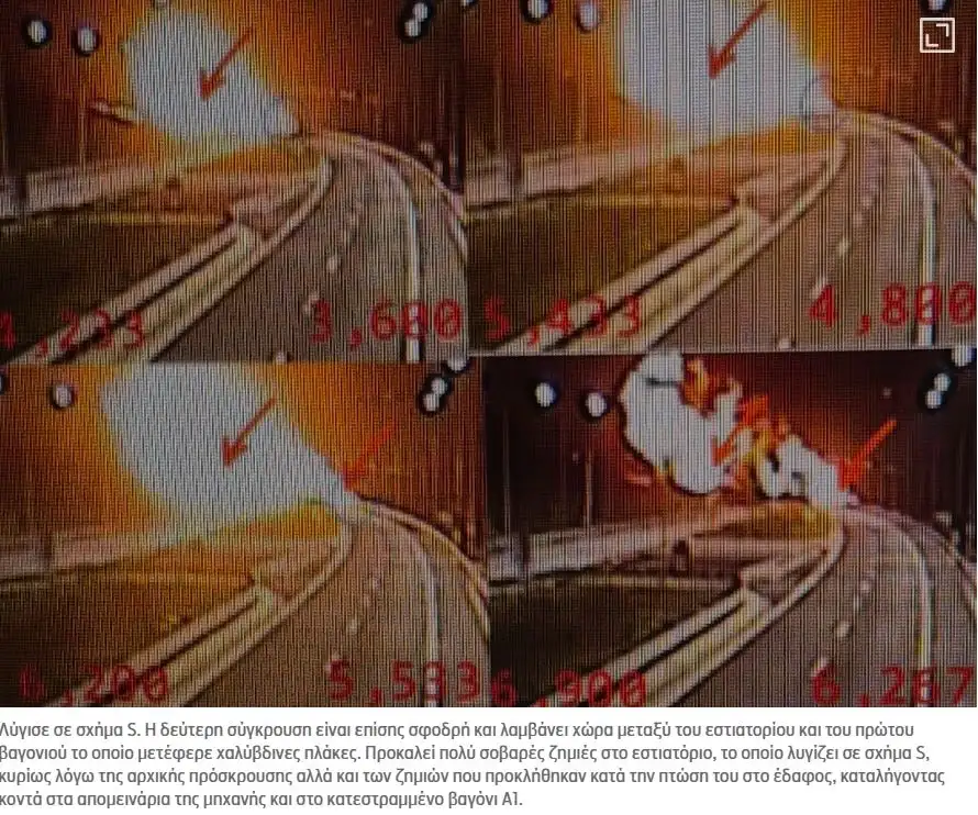 Στην τρίτη φάση της σύγκρουσης, βαγόνια συνεχίζουν να συγκρούονται με ελαφρώς μικρότερη ορμή, σύμφωνα με το πόρισμα.