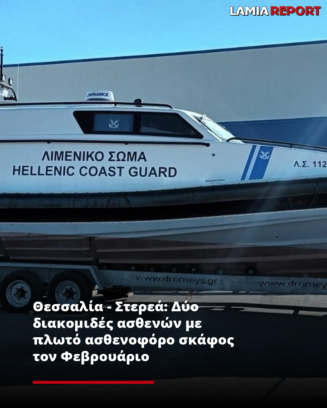 Θεσσαλία - Στερεά: Δύο διακομιδές ασθενών με πλωτό ασθενοφόρο σκάφος τον Φεβρουάριο