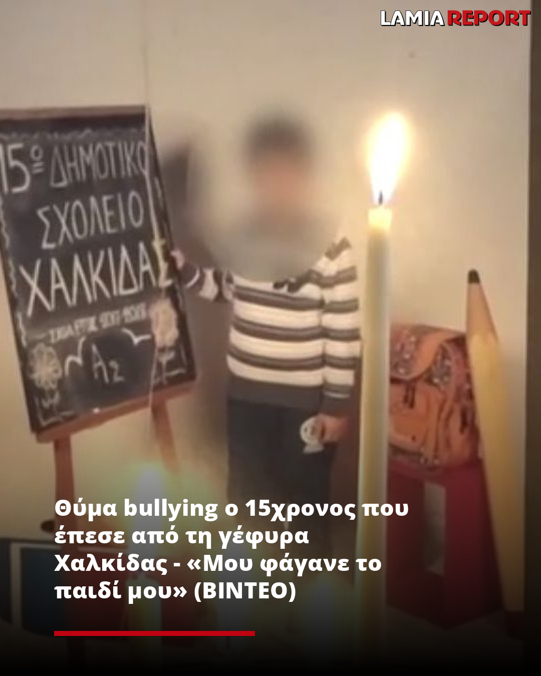 Στο πένθος έχει βυθιστεί η οικογένεια του ανήλικου, ο οποίος πήρε το πατίνι του και έφυγε από το σπίτι του στις 5 Ιανουαρίου, έχοντας μαζί το κινητό του τηλέφωνο και τελικά έπεσε από την ψηλή γέφυρα της Χαλκίδας, στην Εύβοια. Σύμφωνα με την μητέρα του, ο 15χρονος ήταν εθισμένος στα βιντεοπαιχνίδια, ενώ δεχόταν συστηματικό bullying από τους συμμαθητές του.