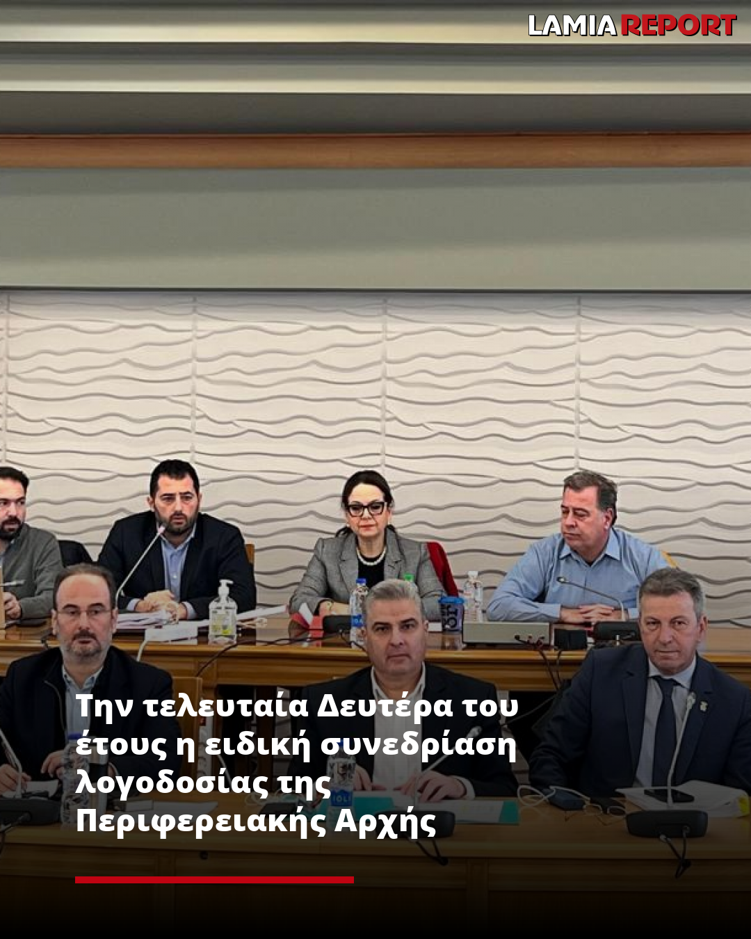 Πρόσκληση σε ειδική συνεδρίαση λογοδοσίας της Περιφερειακής Αρχής για το έκτο δίμηνο του έτους 2024, απευθύνει η Πρόεδρος του Περιφερειακού Συμβουλίου Λουκία Θεοδώρου Μαγουλά για τη Δευτέρα 30 Δεκεμβρίου 2024 στις 11:00’ το πρωί στην αίθουσα συνεδριάσεων «Λάμπρου Παπαδήμα» (Αινιάνων 6-8, Λαμία).