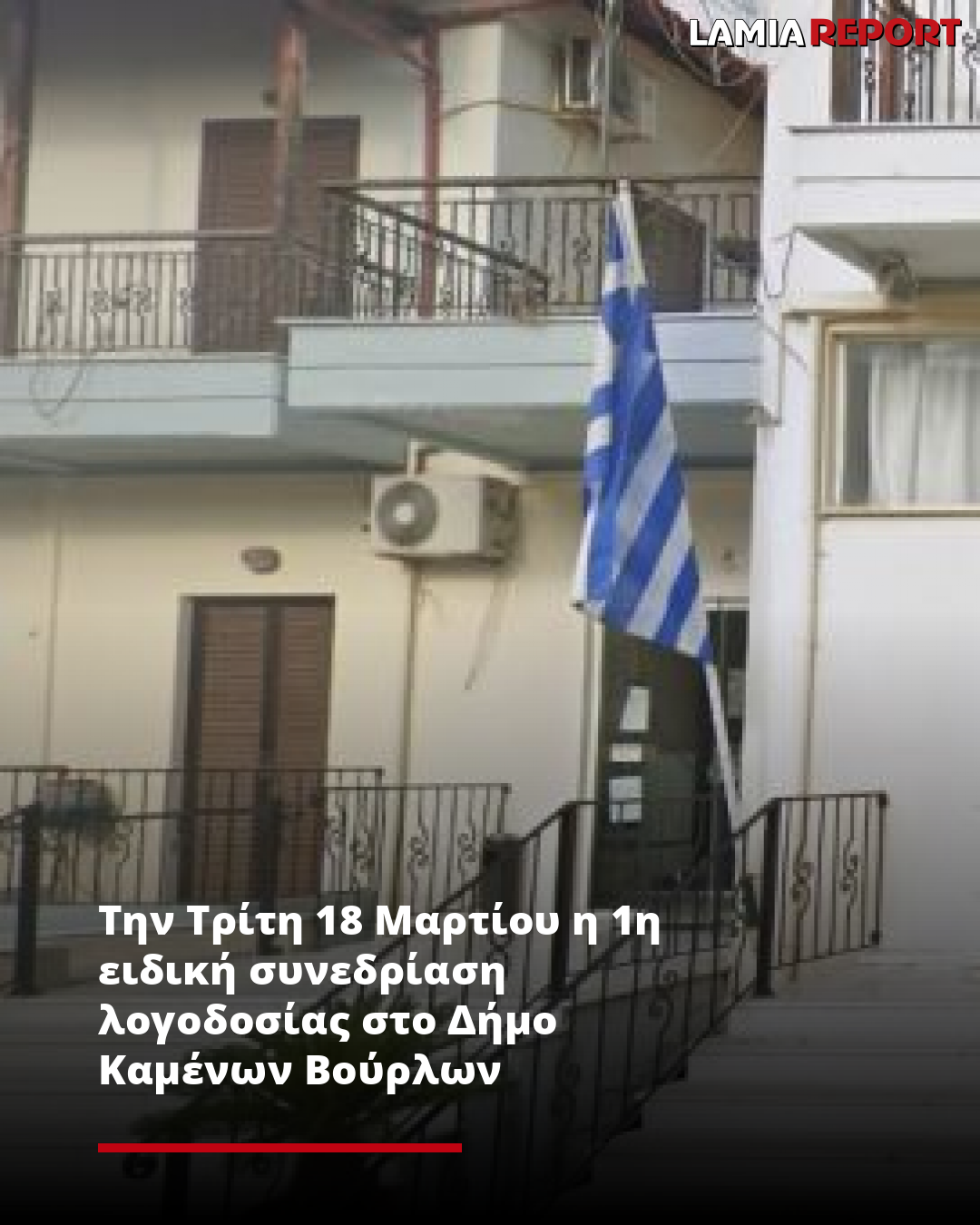 Στην αίθουσα συνεδριάσεων του Δημοτικού Καταστήματος Μώλου θα πραγματοποιηθεί την Τρίτη 18 Μαρτίου και ώρα 19:00’ η 1η ειδική συνεδρίαση λογοδοσίας της Δημοτικής Αρχής Καμένων Βούρλων.